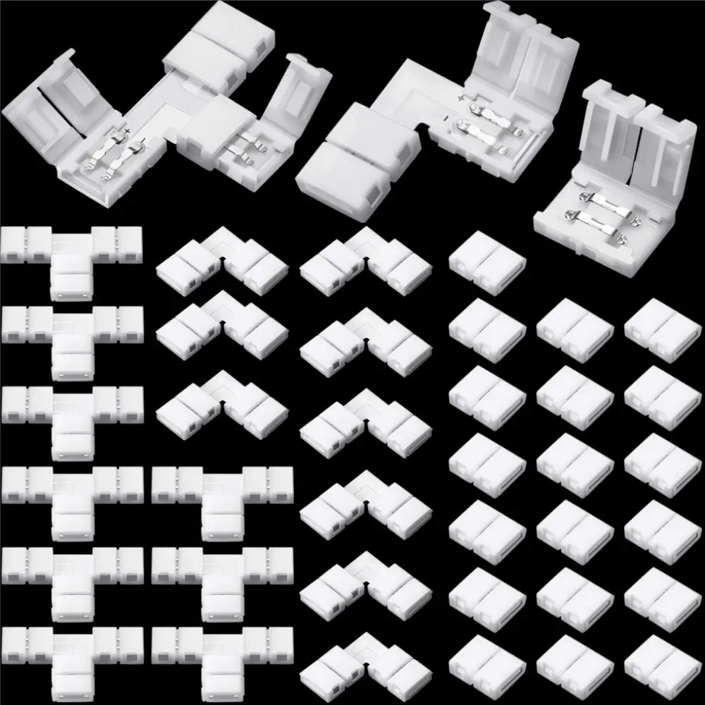 What You Will Get: the 8mm led strip connectors 2 pin package comes with 10 pieces L shape RGB connectors, 20 pieces gapless 2 pins connectors and 10 pieces T shape LED adapters light connectors, the sufficient quantity could meet your various demand in daily life