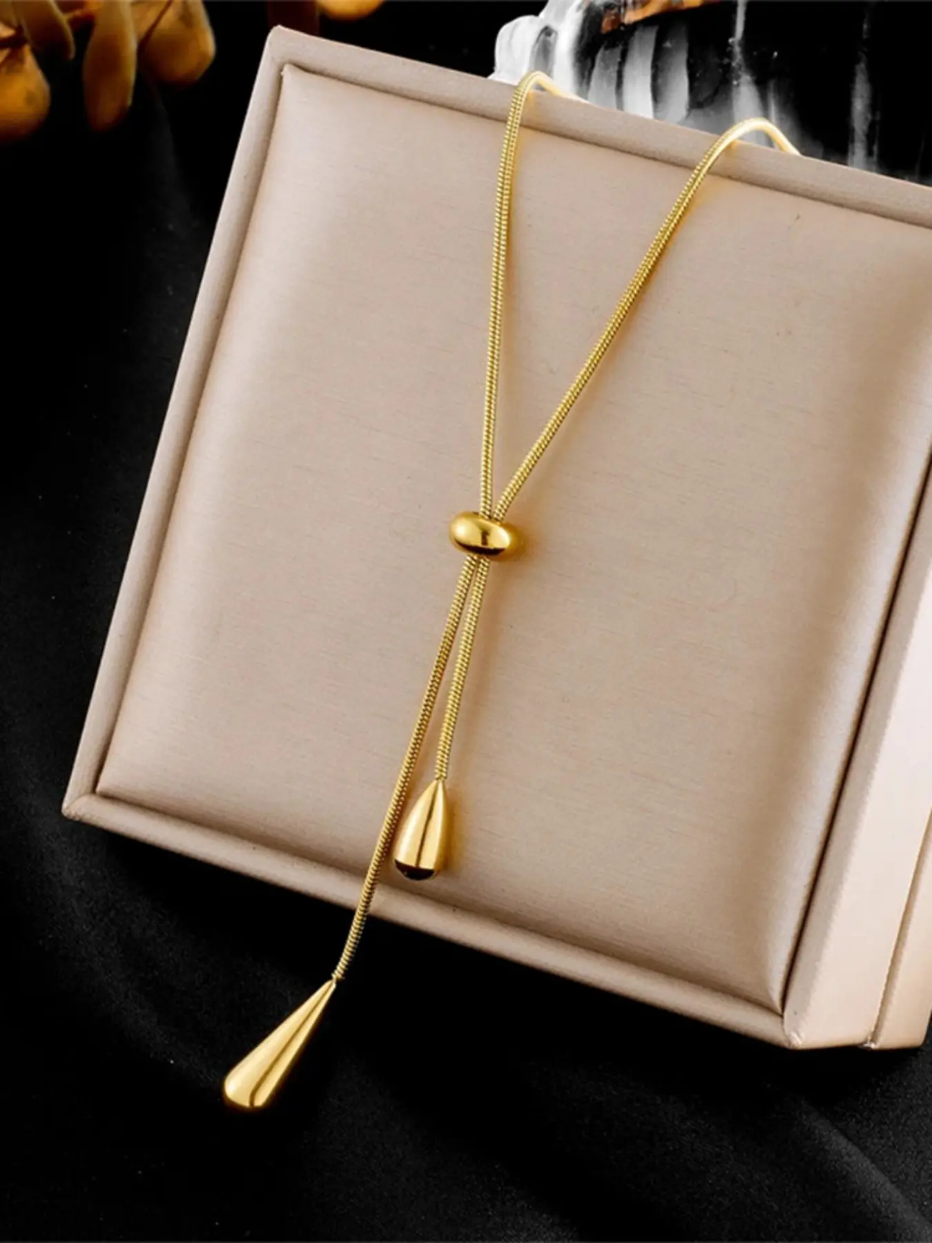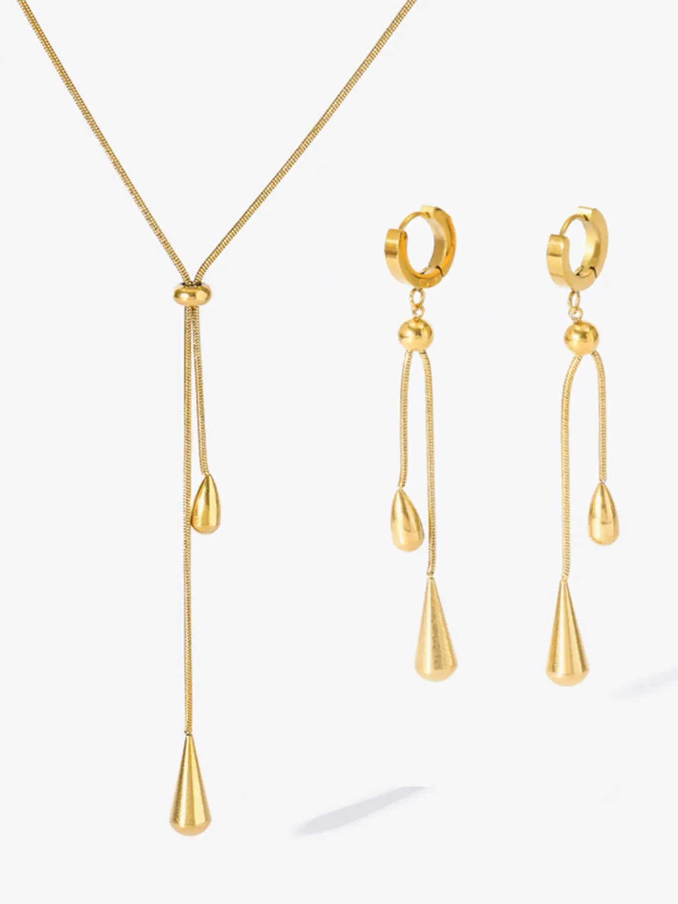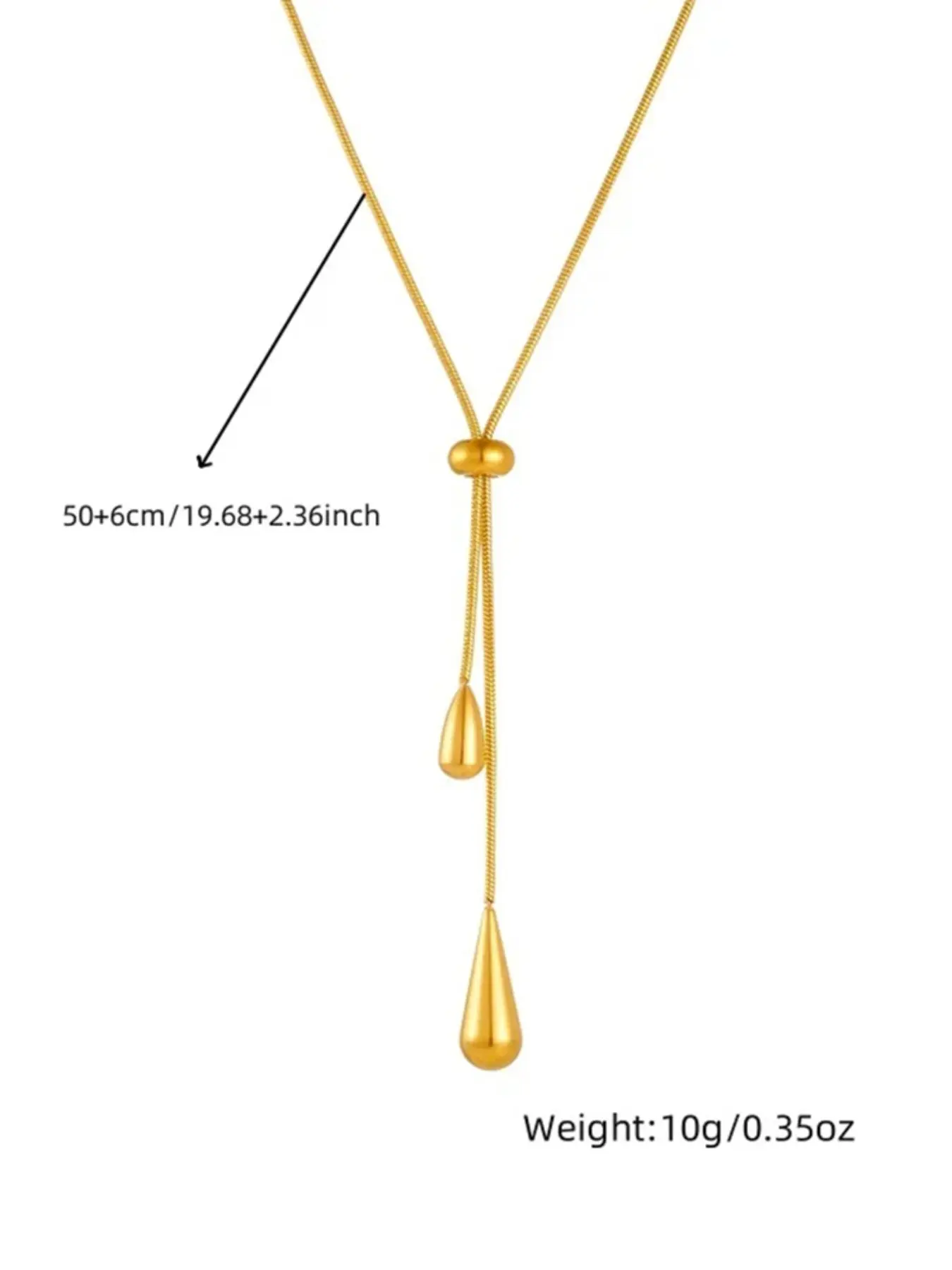 2Pcs 316L Stainless Steel Adjustable Water Droplet Tassels Necklace Earrings Women New Golden Fashion Jewelry Set Party Gifts
