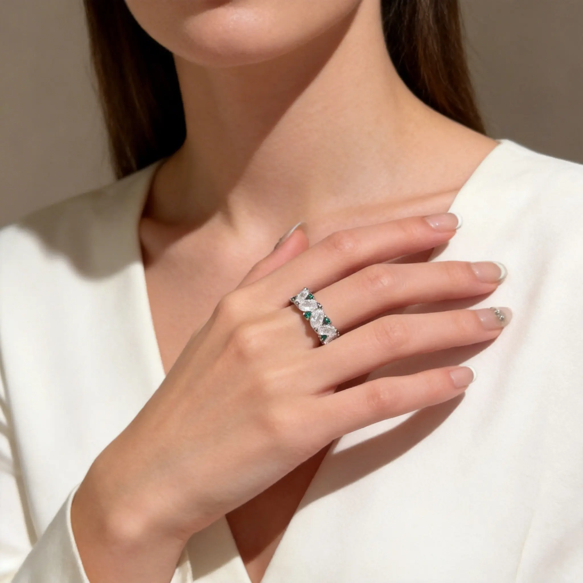🌟 Hypoallergenic Marquise Emerald Eternity Ring