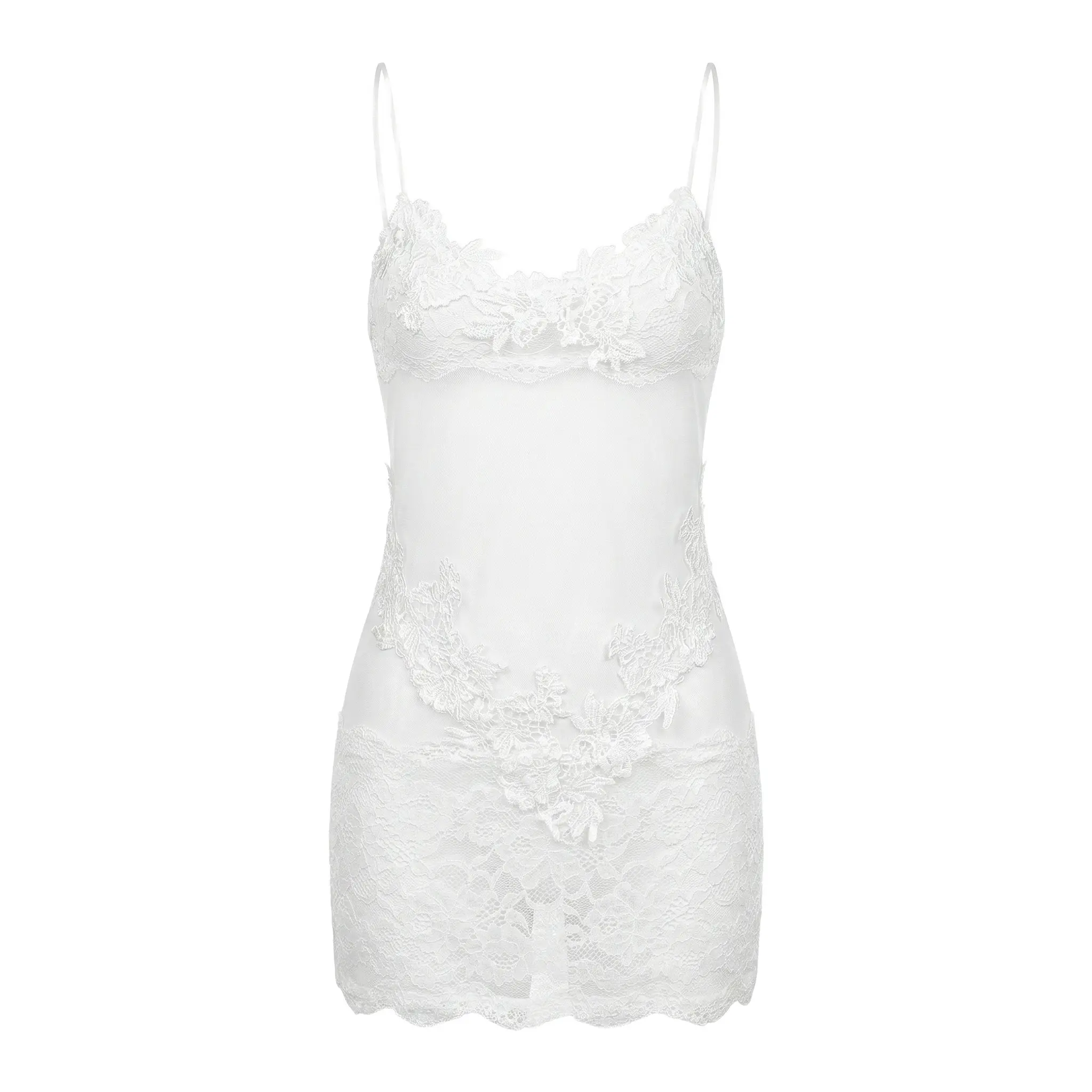 SILIX Lace Trim Mesh Chemise Lingerie Set - Sexy 3D Floral Embroidery Nightgown with Adjustable Spaghetti Straps & Sculpting Effect Mini Slip Dress Sexy Feminine Lingerie Set Underwear