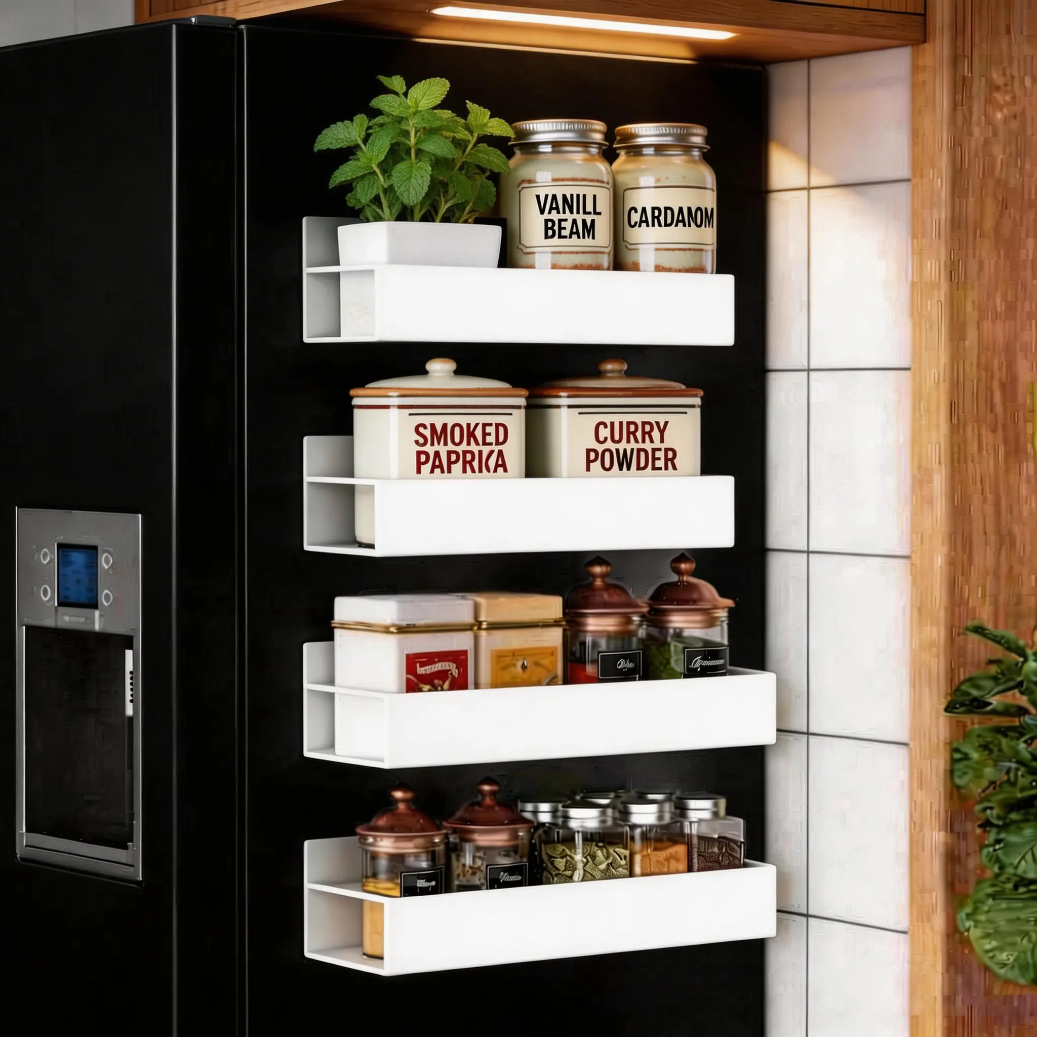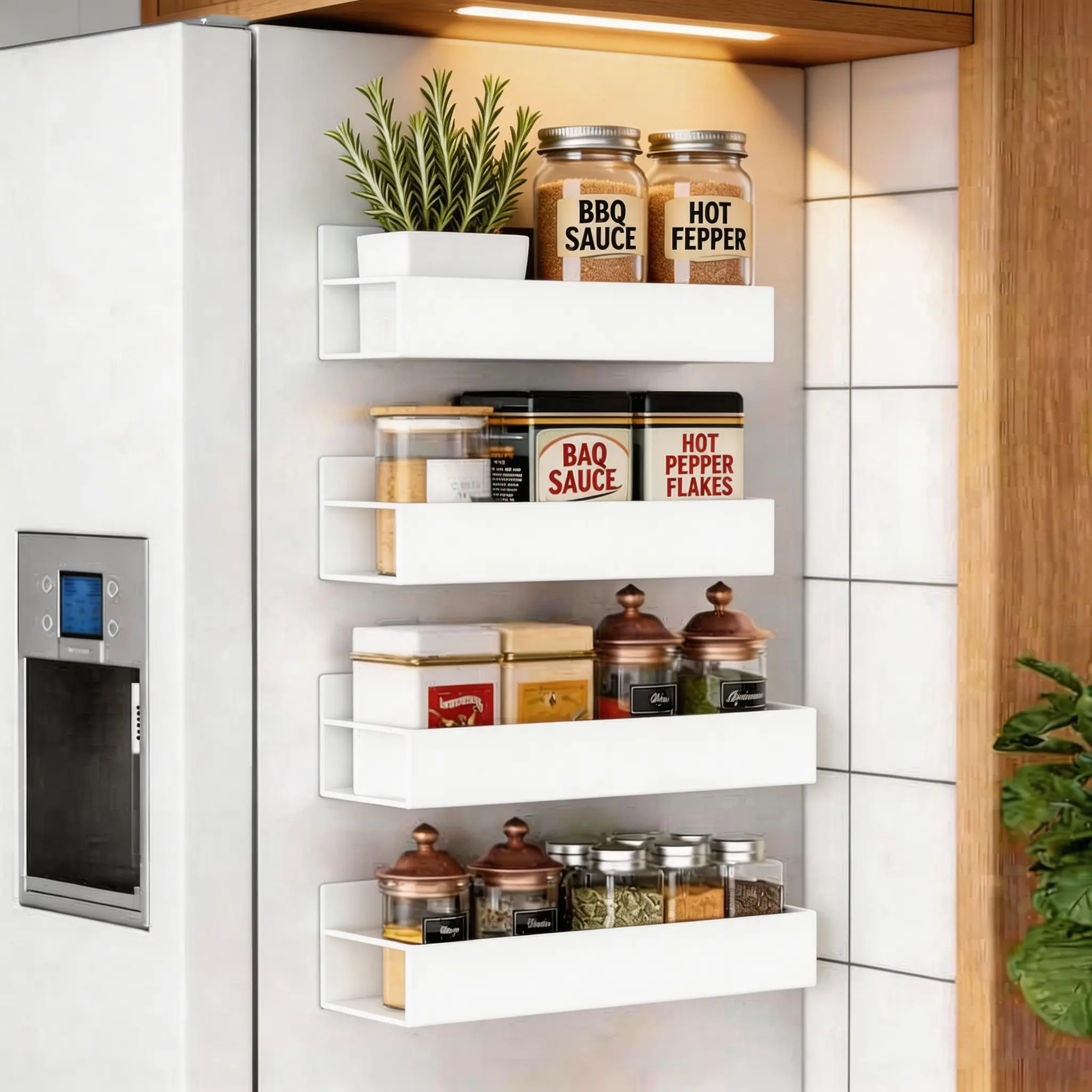 ·Maximize Your Kitchen Space Instantly! Free up precious countertop and cabinet space. This magnetic rack system instantly transforms the side of your fridge or oven into a sleek, vertical spice pantry. Perfect for small kitchens, RVs, and dorm rooms.