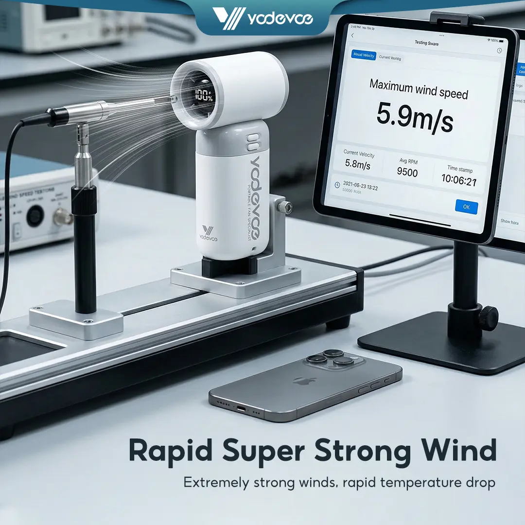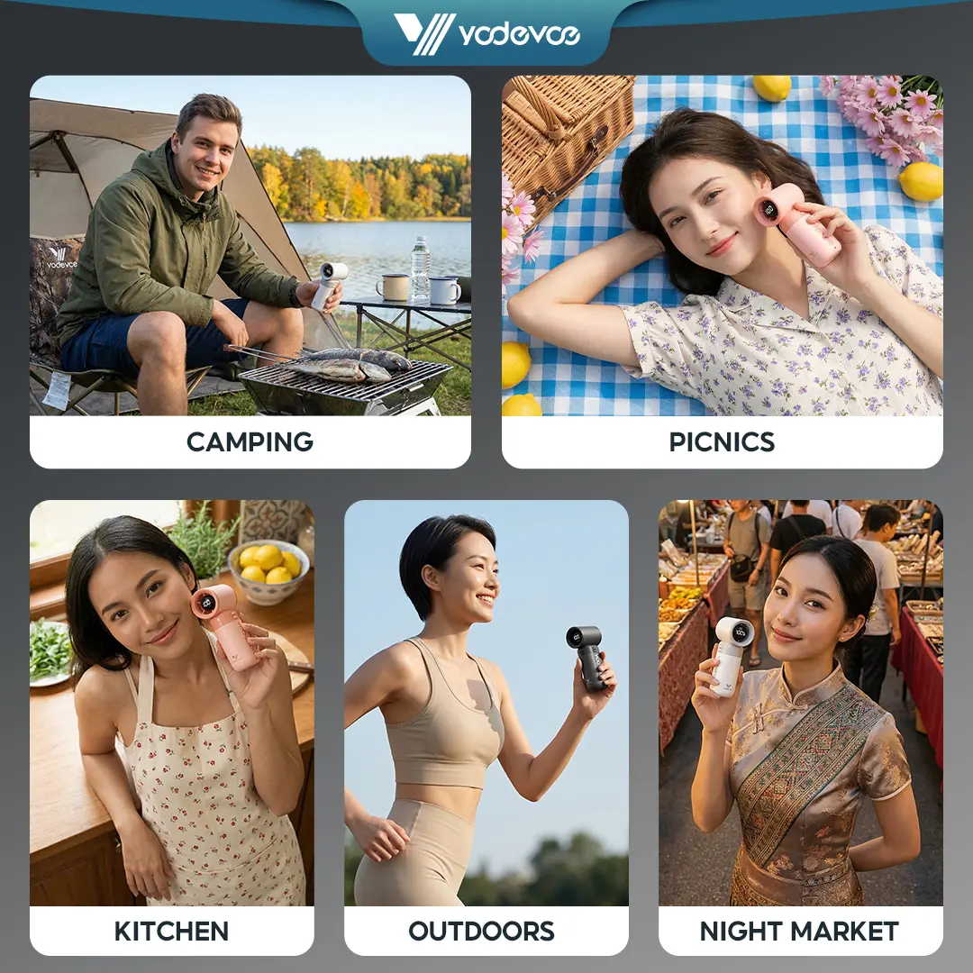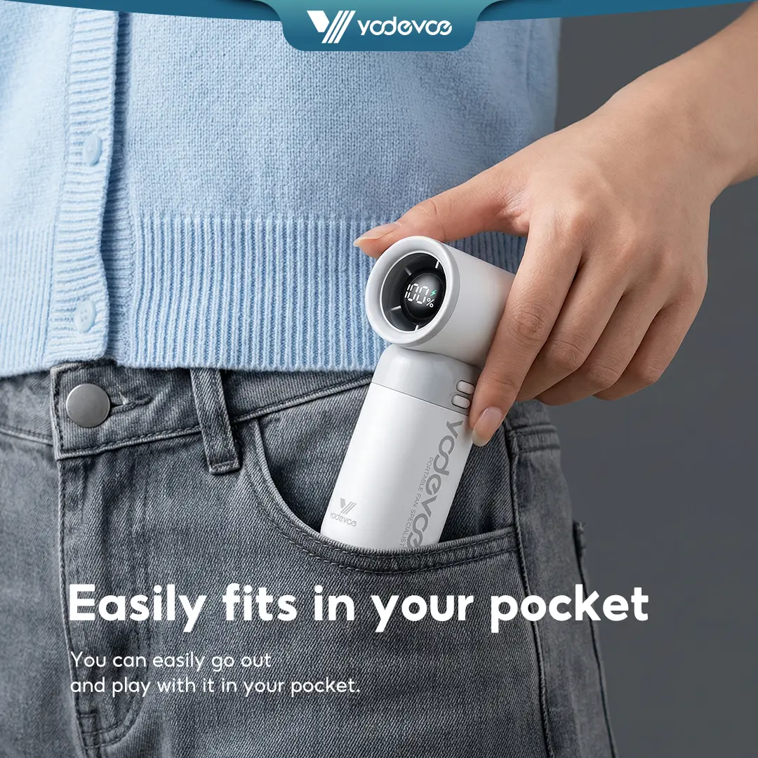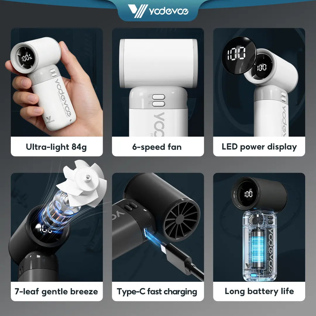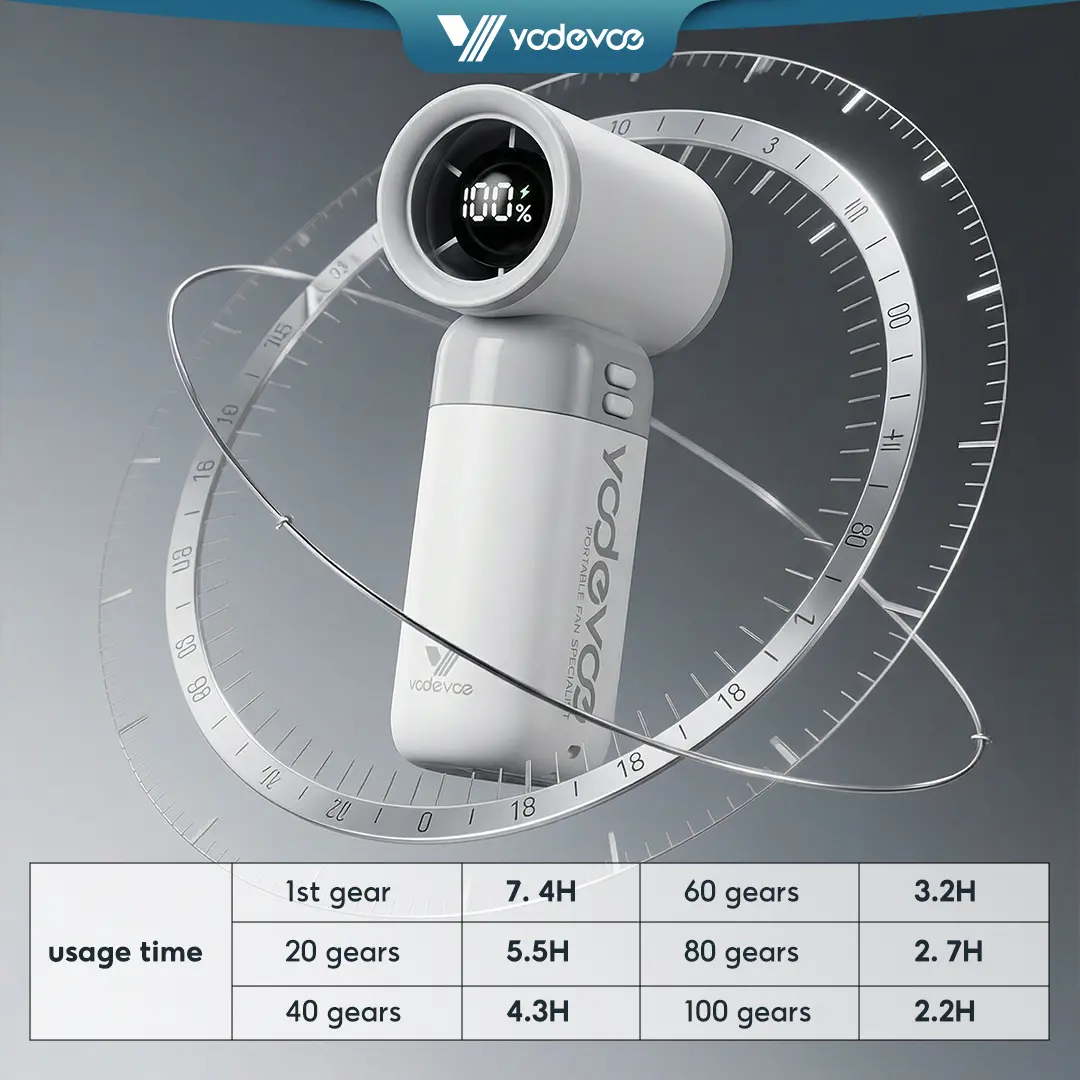 5. Yodevoe Mini multi-functional handheld fan, powerful turbine portable fan, wind speed 1-100, 20,000 RPM high-speed motor, maximum cooling time 3-13 hours, 3000mAh rechargeable battery, pocket-sized personal travel gadget suitable for both men and women.