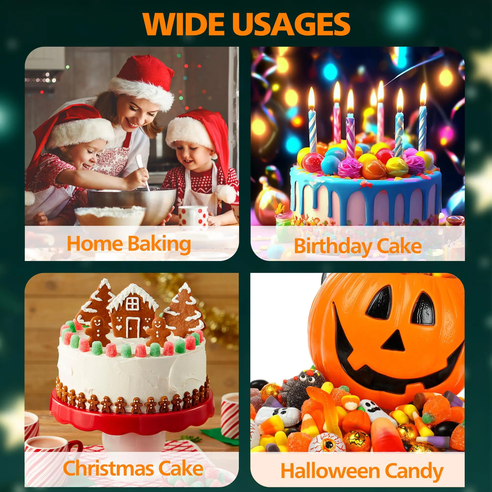 ·Perfect for cakes, icing, frosting, fondant, batter, cookies, cupcakes, and holiday decorations.