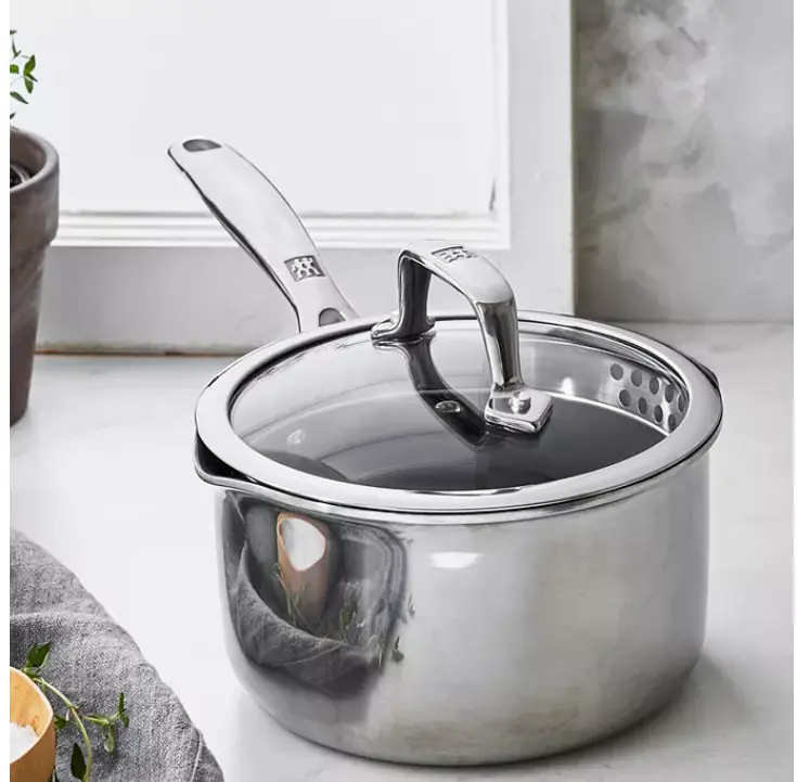 ·Tempered glass lid with built-in strainer lets you monitor the cooking process