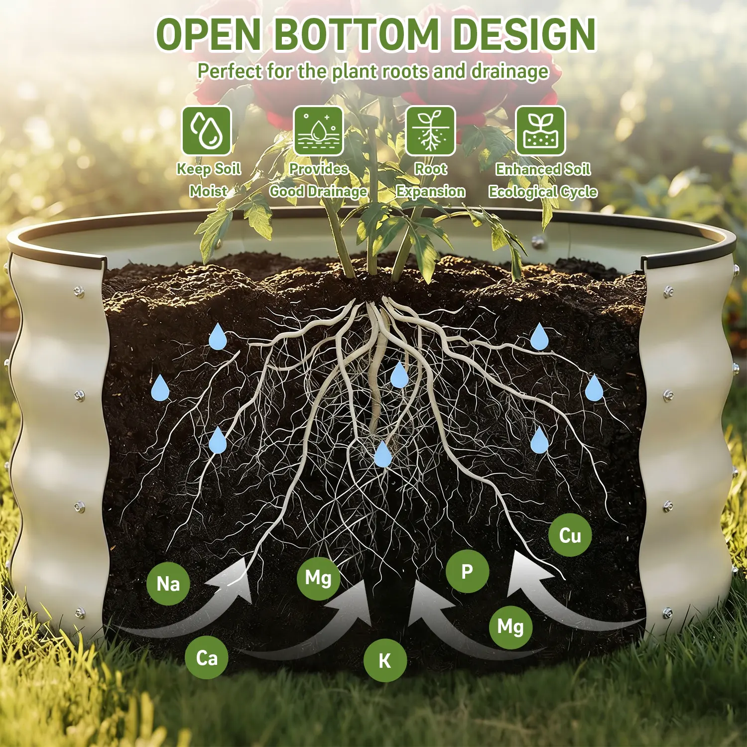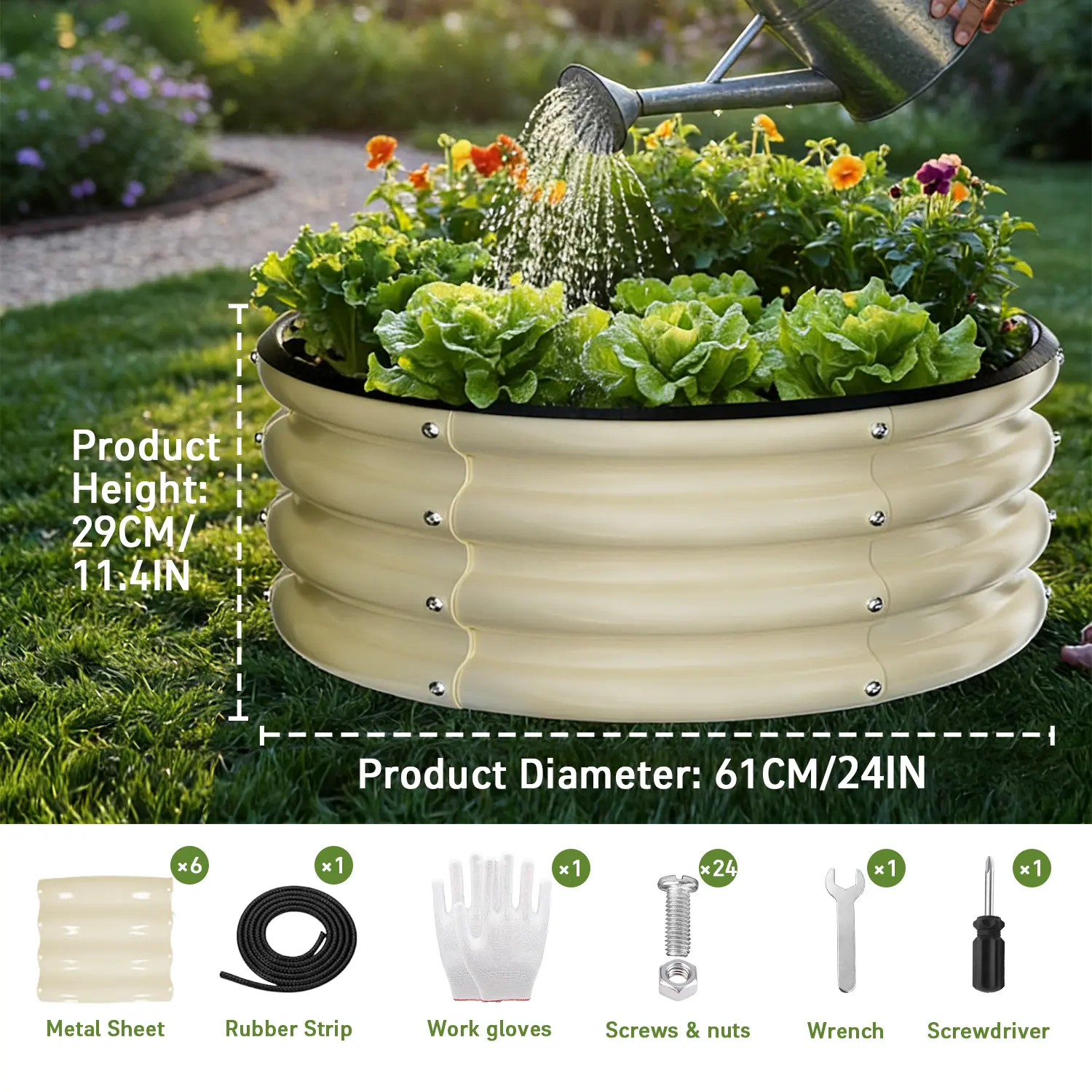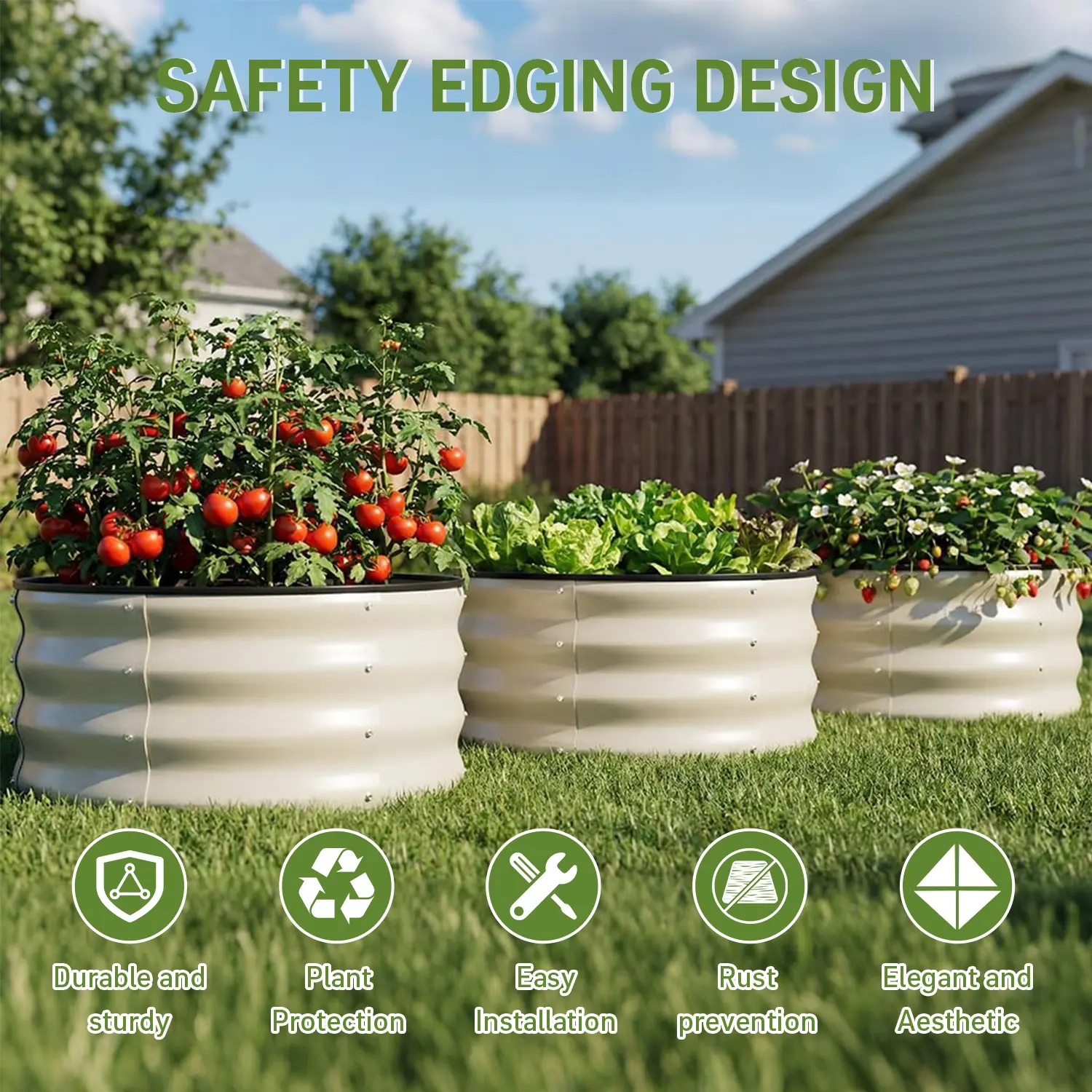 【Plant Must Have】Metal round raised 2Pcs 2x2x1ft Round Galvanized Raised Garden Bed Kit Outdoor, Metal Planter Box for Planting Plants Vegetables, White