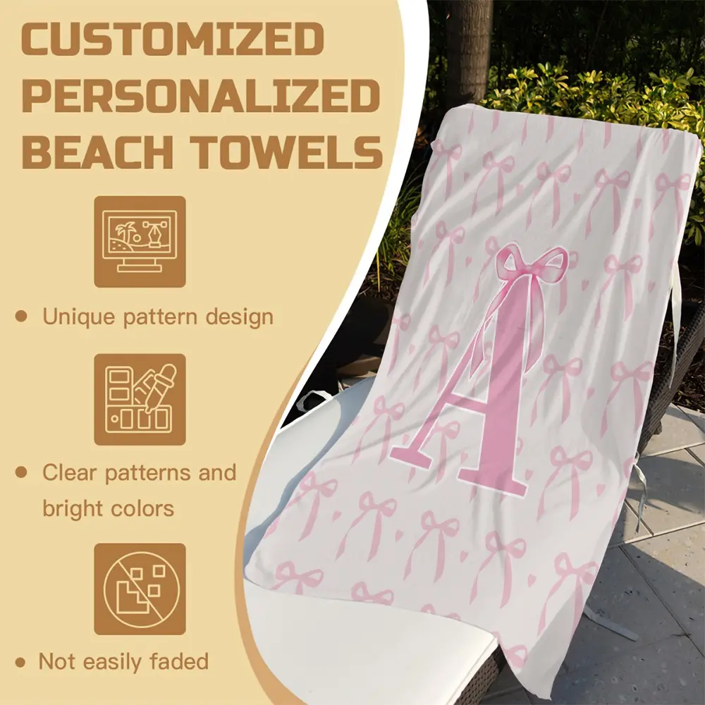 Pink Romantic Ballet Bow Alphabet Sand-Free Beach Towel, for Beach, SPA, Hot Spring, Picnic, Camping, Fitness & Yoga, Water Absorbent, Quick-Dry & Portable, Ideal Housewarming Birthday Christmas Gift