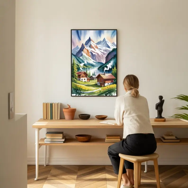 ·Watercolor Art Print: Bring the scenic beauty of Grindelwald into your home.