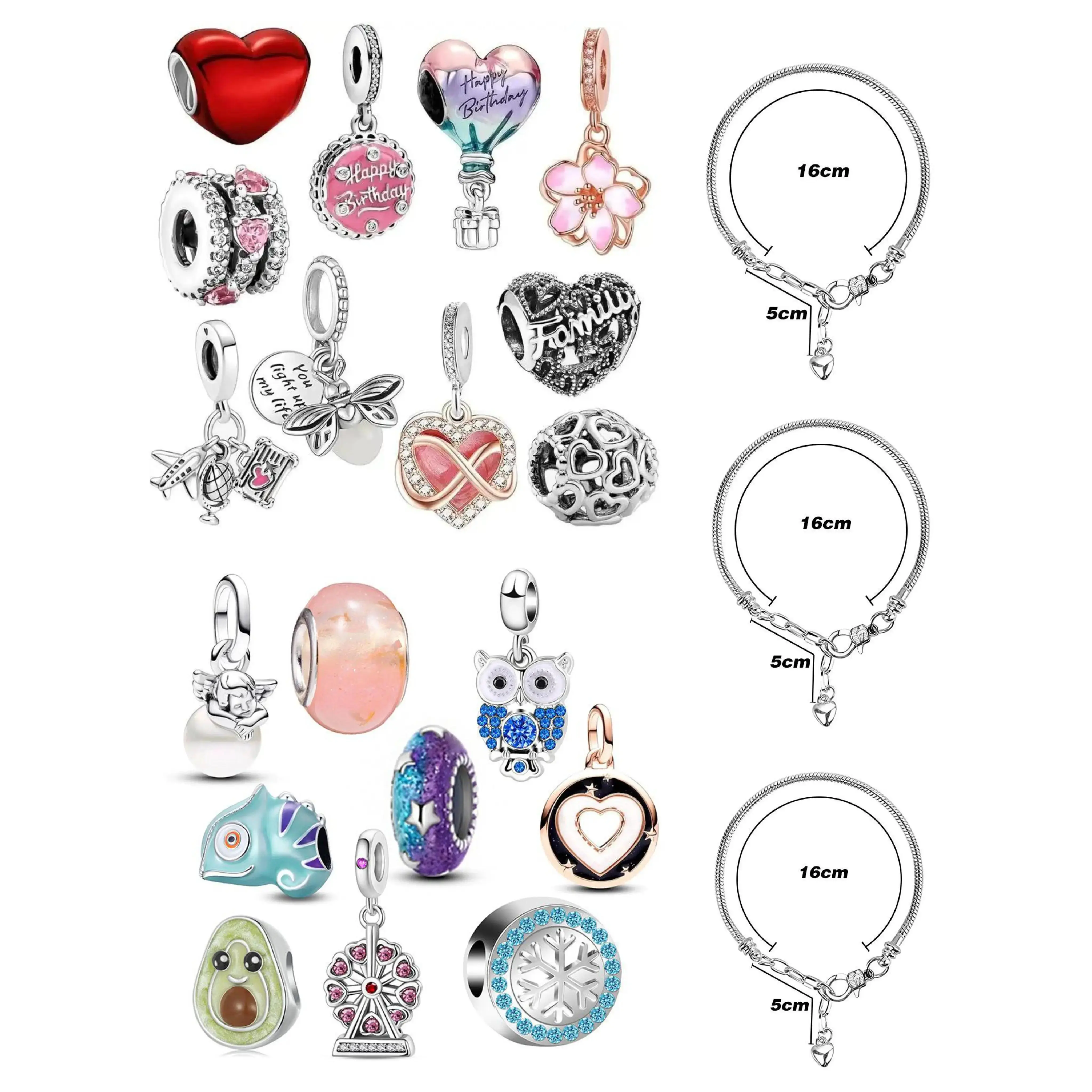18/19pcs Silver or Gold Charms Pendants for Jewelry Making, with 3 Adjustable Bracelet Chains, Valentine's Day DIY Gift Kit for Mom, Sister, Friend
