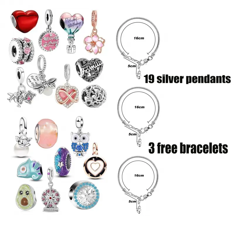 ✨This 18/19pcs Silver or Gold Charms Pendants is ideal for jewelry making.It includes 3 adjustable bracelet chains, perfect for crafting.Ideal for Valentine's Day, this DIY gift kit is great for mom, sister, or friend.Create unique jewelry pieces with ease.