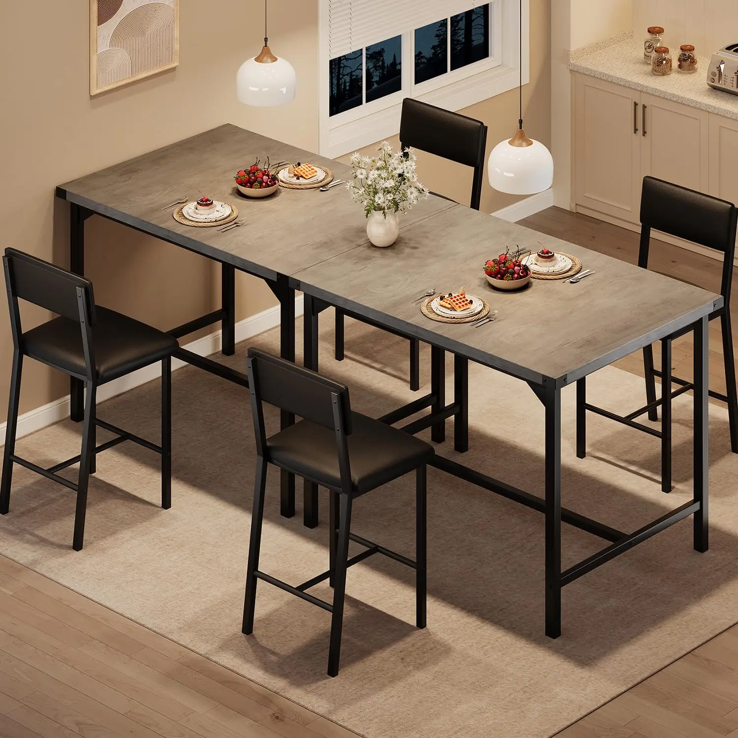 · 【Dining Table Set for 2 with Metal Corner Guards】This dining table set for 2 includes a counter-height table and four upholstered bar stools, ideal for sharing meals or beverages with family and friends. The table is strengthened with durable metal corner guards to help protect against daily bumps, ensuring lasting performance and maintaining a well-kept look. The sleek lines and wood grain finish add a touch of industrial charm that complements a range of home décor styles.