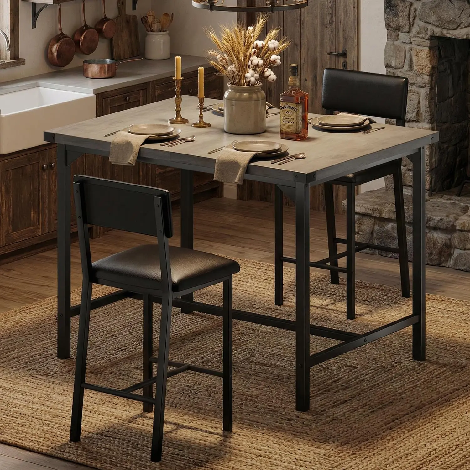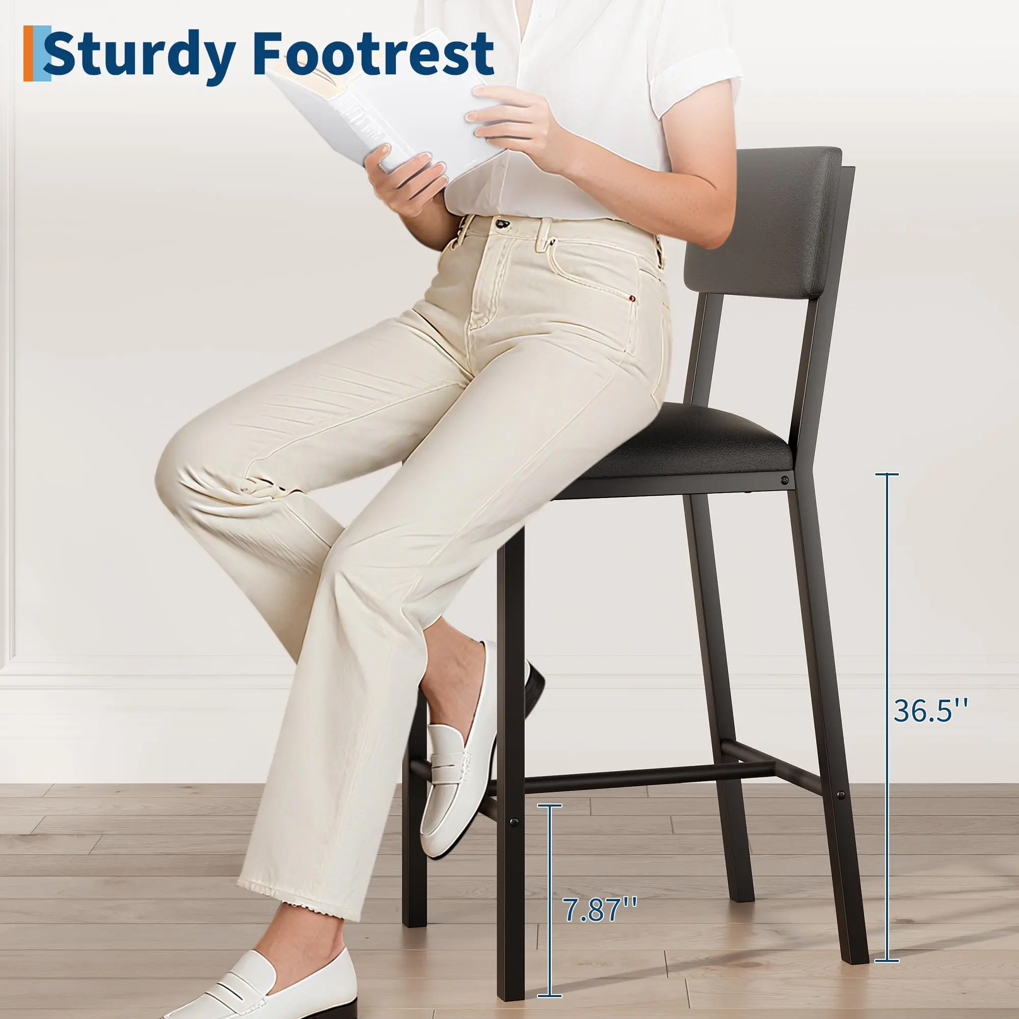 · 【Durable Tabletop & Comfortable Bar Stools】Featuring a spacious 35.5” x 29.5” tabletop for all your dining essentials and decor, this dining table set for 2 offers both function and style. Each bar stool comes with a 15.6” wide PU leather seat and soft cushioning for comfort. The ergonomic backrest is designed to support your back, while a horizontal footrest provides a comfortable place to rest your feet.