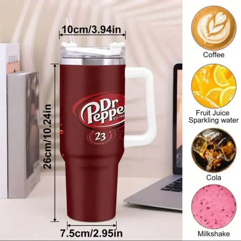 Dr Pepper Tumbler, 40oz With Handle Tumbler, Paint Drip Design, Christmas Gift, 40oz Stainless Steel Tumbler, Glitter Design, Perfect Gift For Pepper Lover