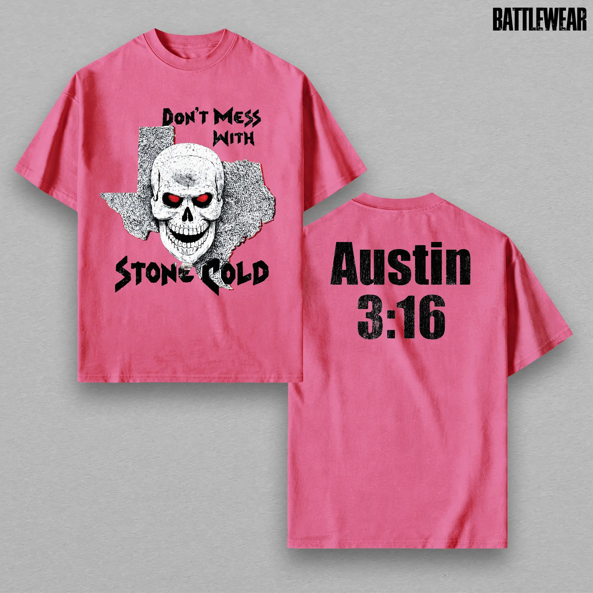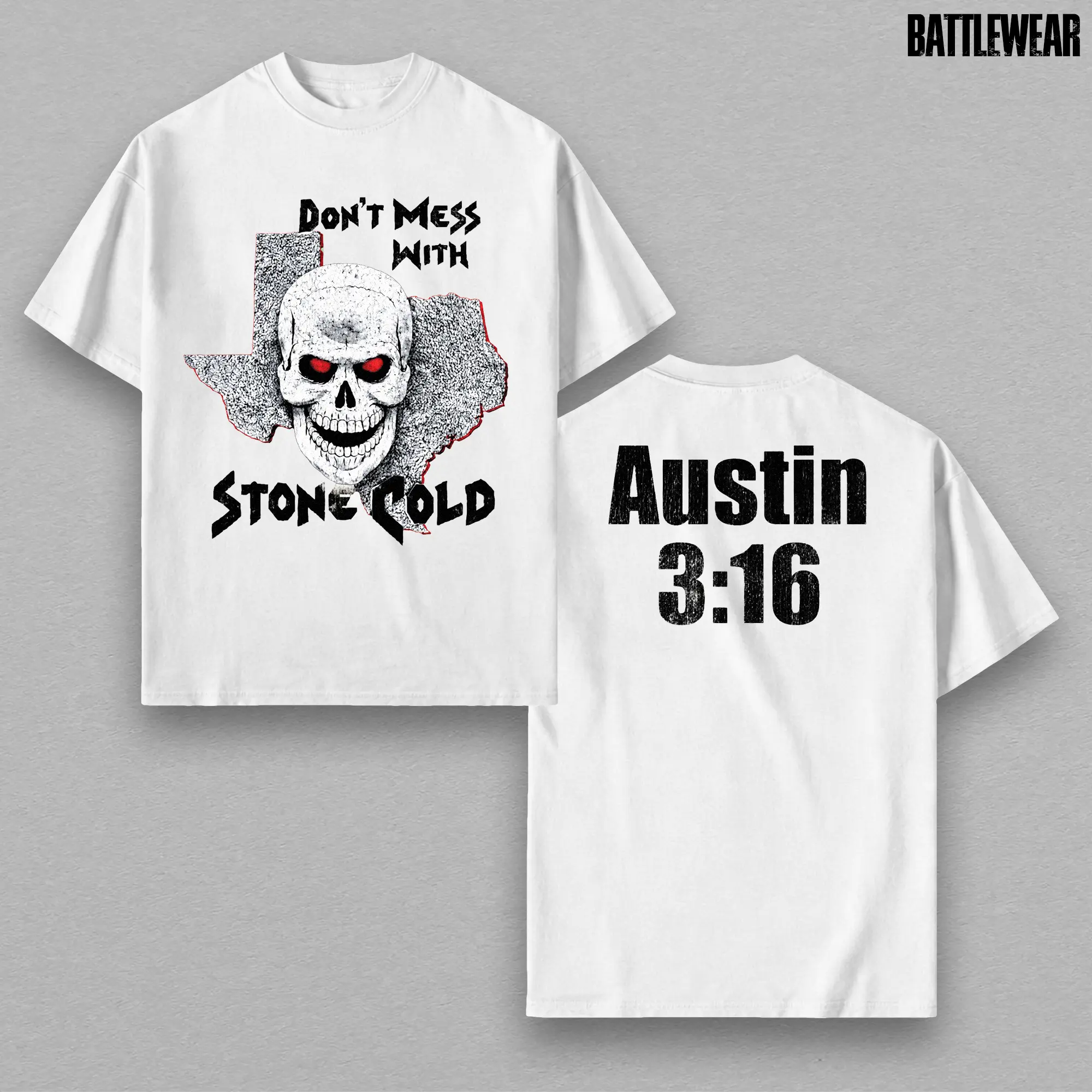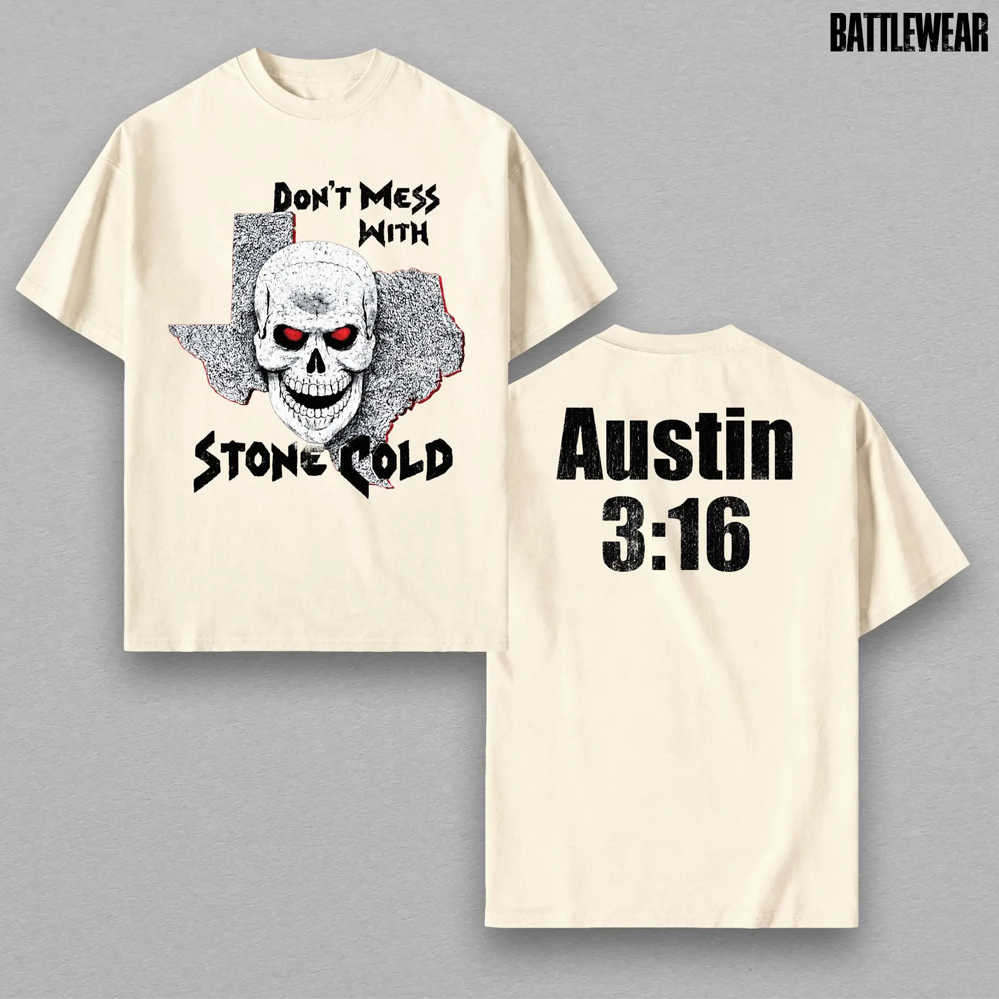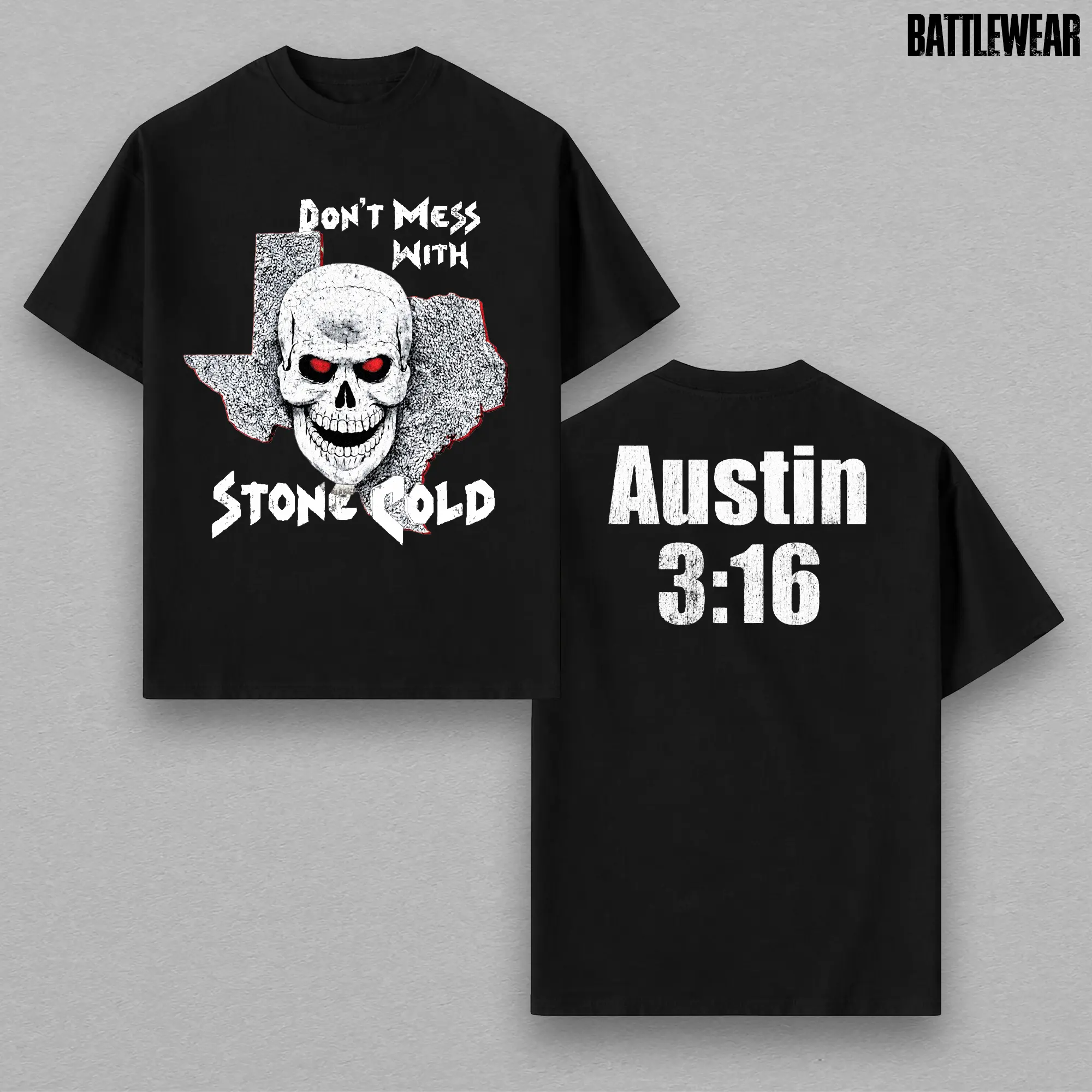 Stone Cold Steve Austin 3:16 Don't Mess With Texas Skull T-Shirt Black Men's Graphic Tee WWE Wrestling Merch