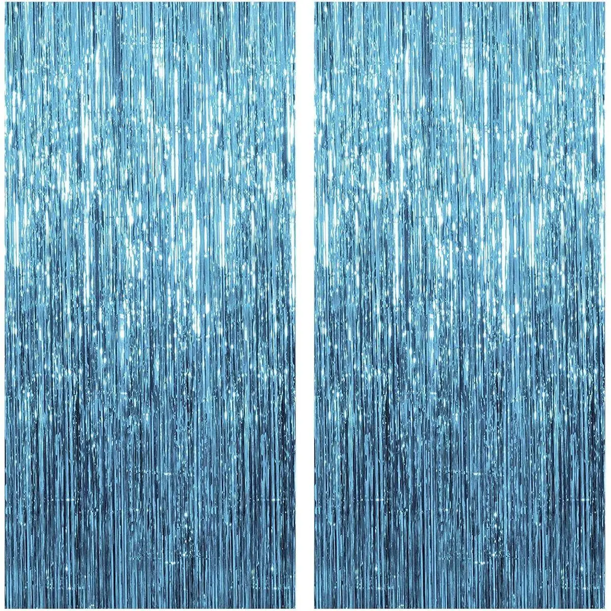 Blue Streamers Backdrop: 2Packs/Set, enough quantity for your party decoration. Each pack curtains size is 3.28 ft x 6.56 ft, enough length for decorate your party. Perfect accessories for decorating doors and walls.