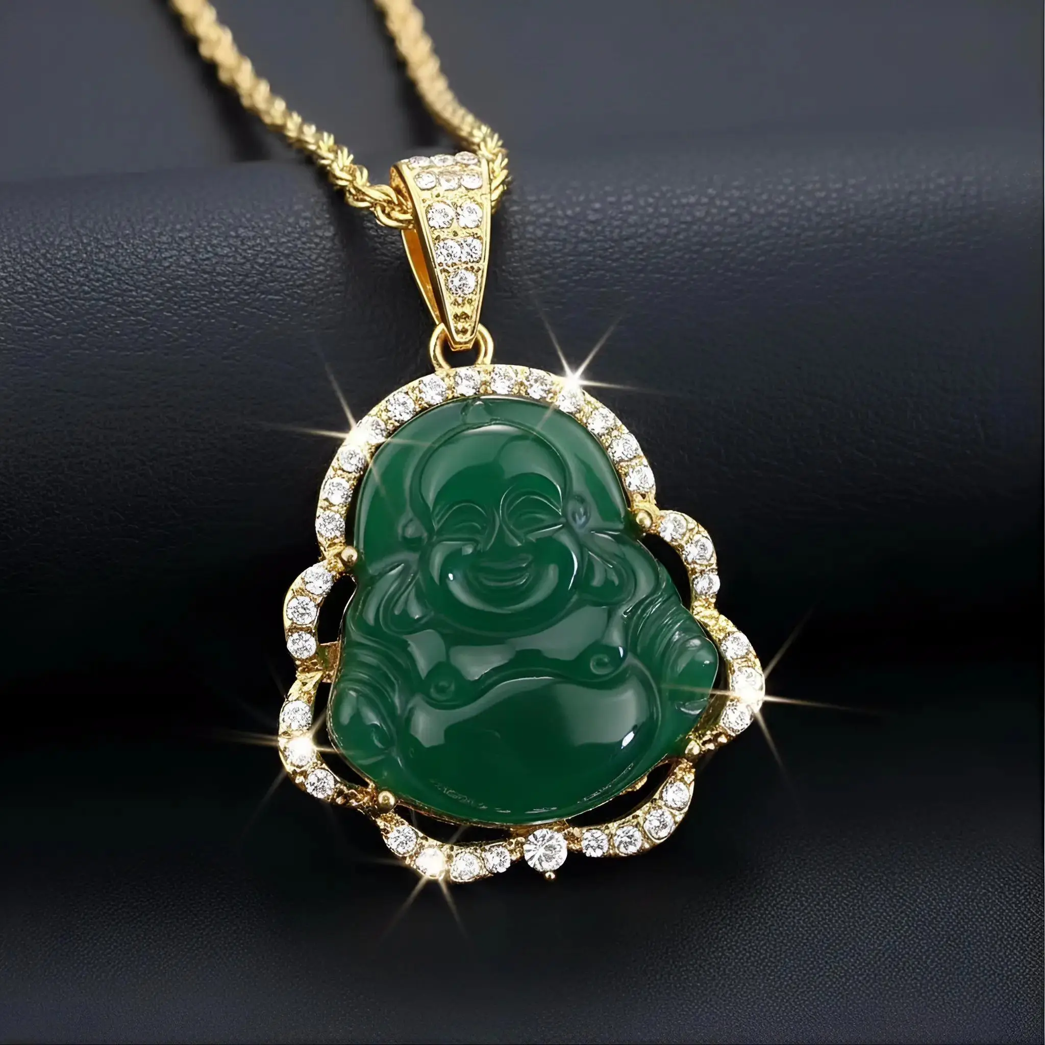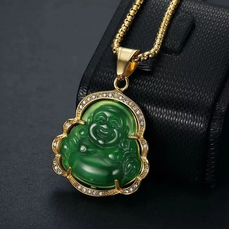 🌟Fashion Hip Hop Cubic Zirconia Natural Stone Maitreya Buddha Pendant Necklace for Women Lucky Amulet Jewelry Gift🌟
