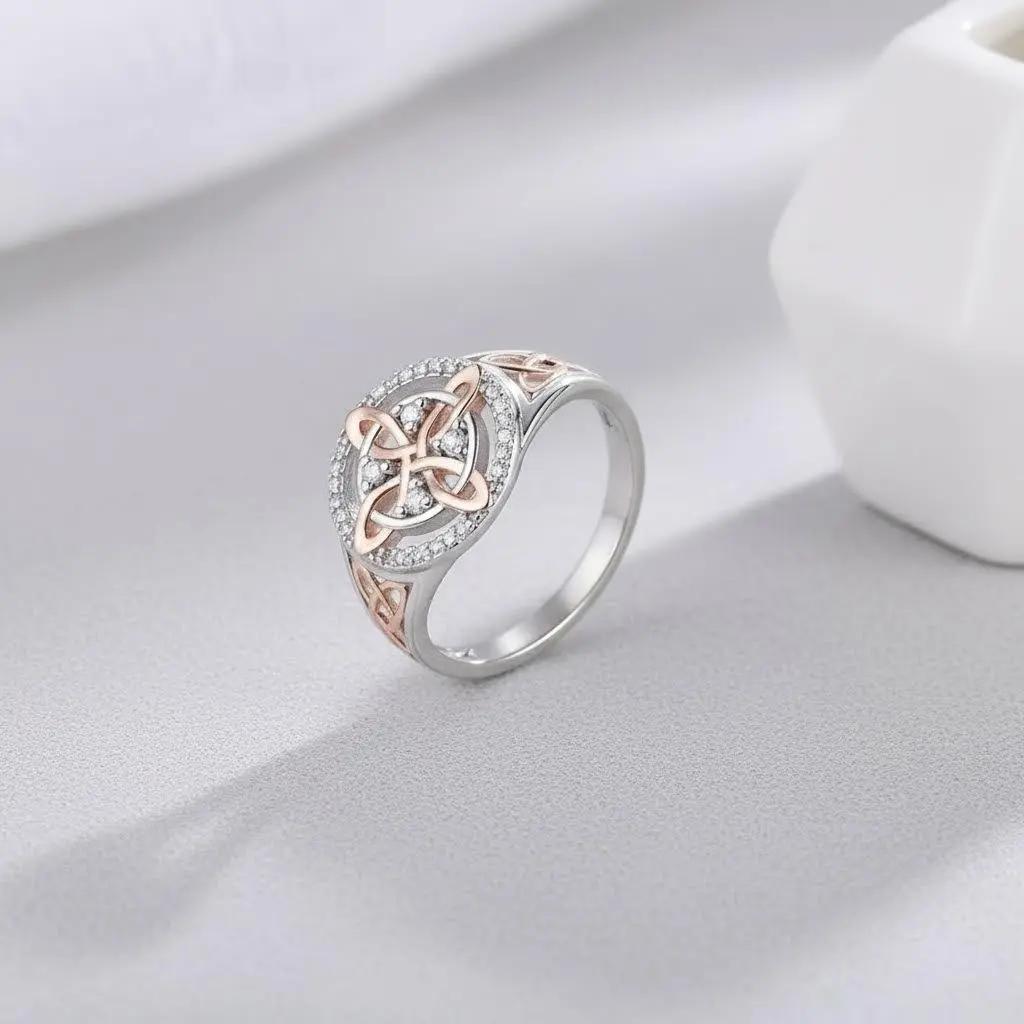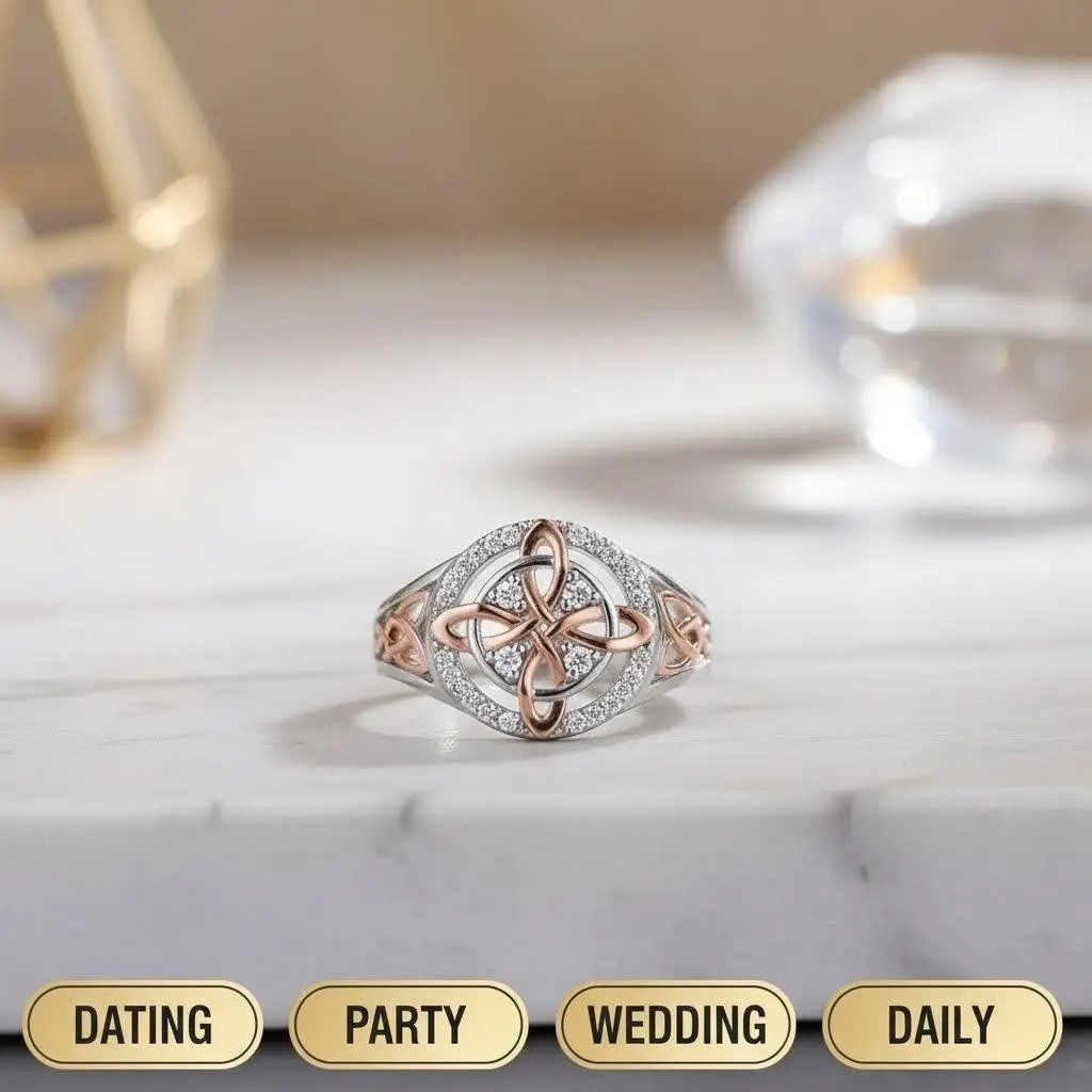 Rose Gold Plated Witches Knot Ring, Anillo Nudo de Bruja Original Celtic Knot , Cubic Zirconia Decorated Witch’s Knot Ring, Witchtok Witch Pagan for Devotion and Protection Valentine’s Day gift crystal jewelry