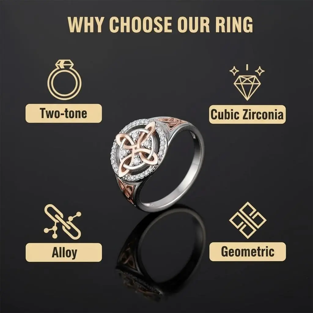 The center of the ring features a classic Celtic four-corner knot design, symbolizing the eternal cycle of life, love, and nature, and representing "endless protection."