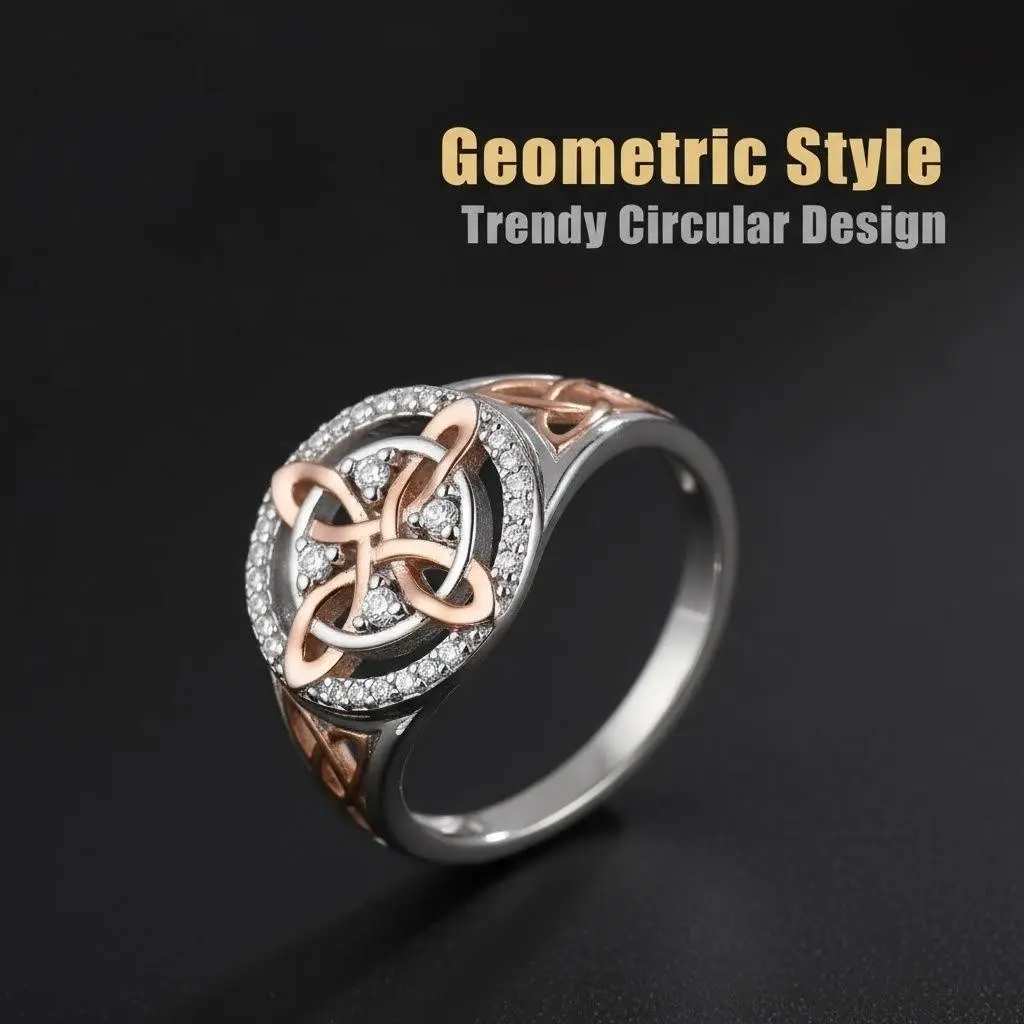 Dual light accents: sparkling cubic zirconia (or pavé stones) are evenly set beneath the central knot and along the outer circle, creating a starlike halo that enhances depth and brilliance from every angle.