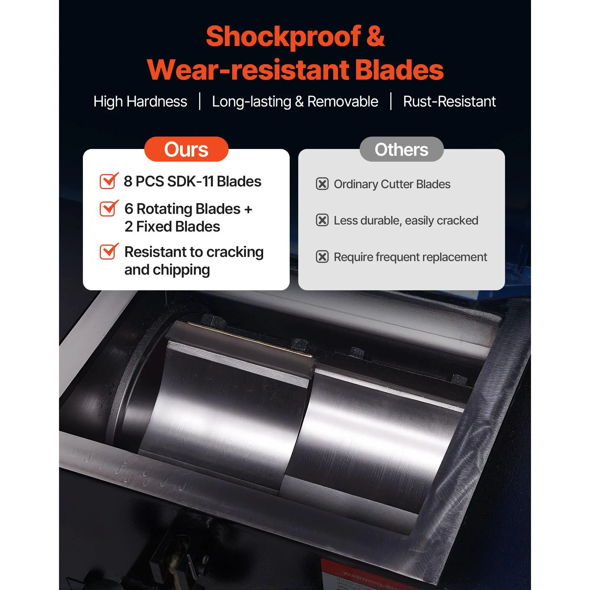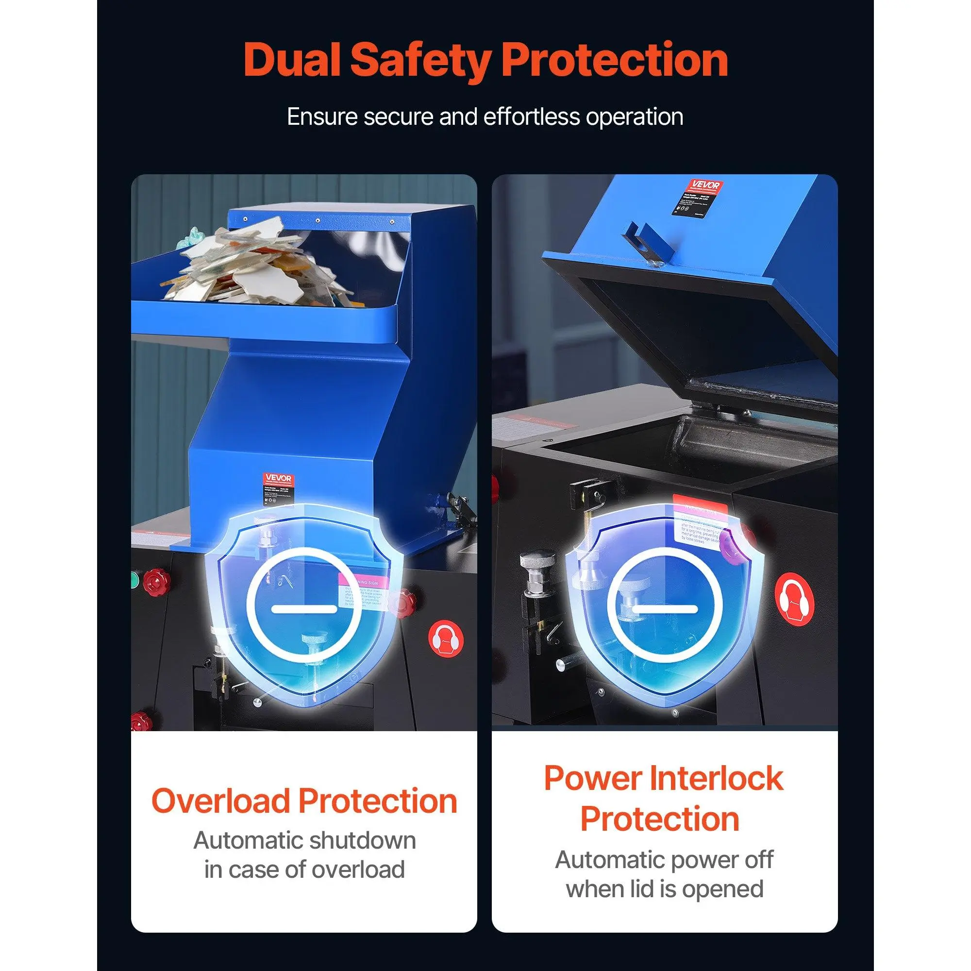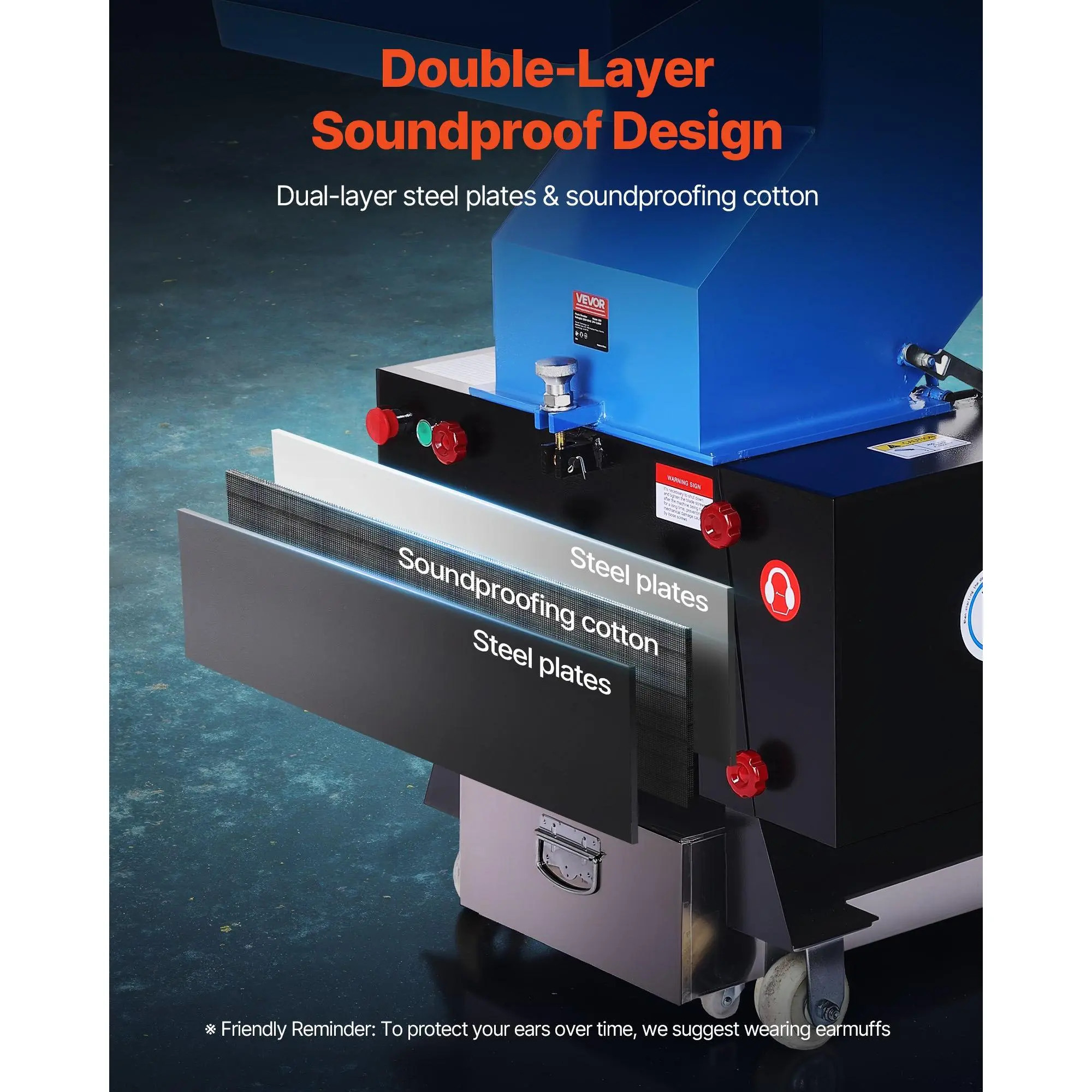 VEVOR Plastic Shredder Crusher, 5.5HP/4.0KW Plastic Grinder Granulator, 150-200kg/h Capacity Pulverizer Recycling Machine with Wheels, SDK-11 Blade 8mm Mesh for PVC PTFE (220V 60Hz 3-Phase)