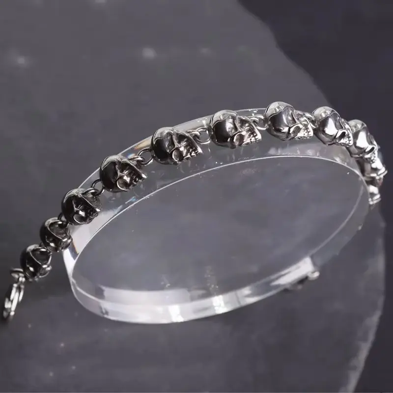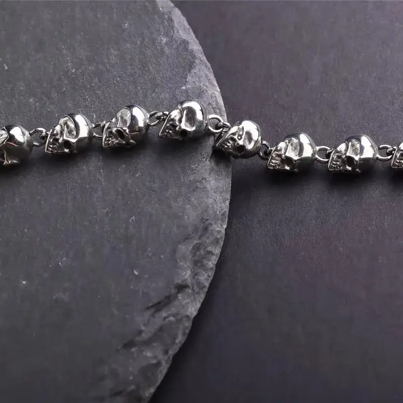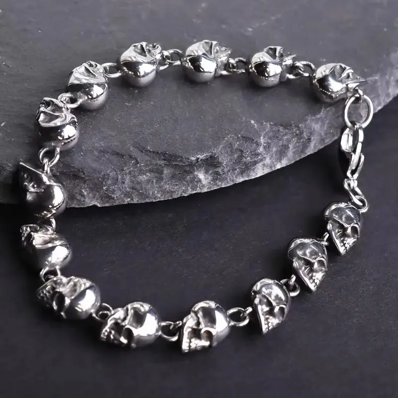 This unique bracelet features a retro gothic skull ghost head design, ideal for men who love motorcycle, rock, hip hop styles.It's a cool accessory for Halloween parties or as a gift.The beaded design adds a touch of edginess to any outfit.Express your personality with this distinctive piece.