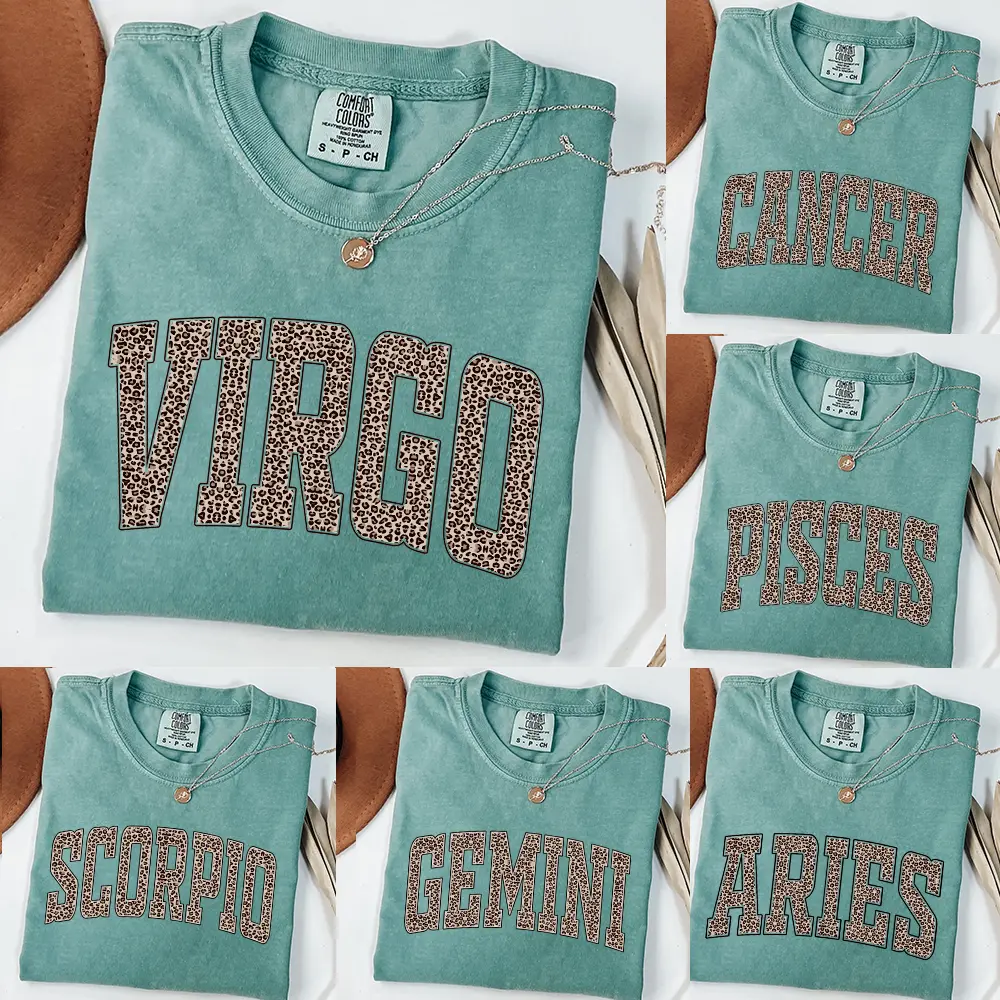 Comfort Colors Astrology Leopard Zodiac Shirt, 12 Horoscope Signs Tee, Aries Taurus Gemini Virgo Libra Scorpio Aquarius Pisces Gift, Trendy Aesthetic Casual Wear, Light Green Color
