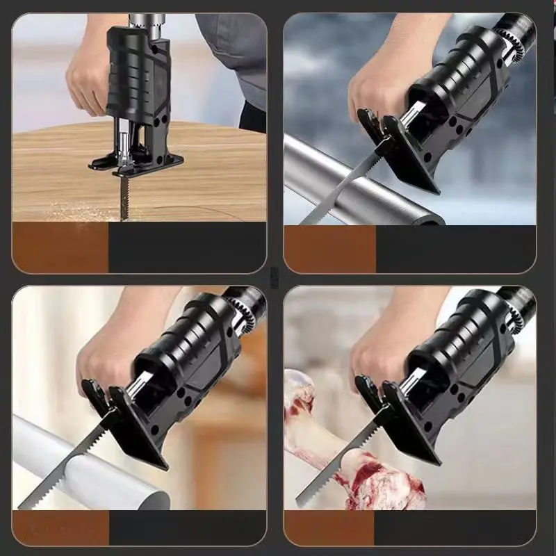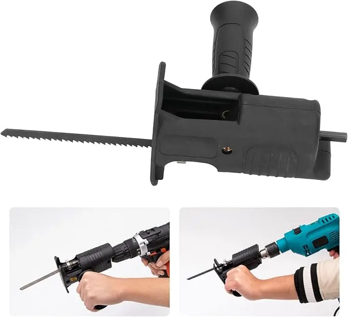 Universal Drill Adapter – Convert Drill to Saw in Seconds: This handy adapter easily converts your ordinary electric drill into a powerful reciprocating saw. No extra tools required, just attach the adapter and install the saw blade. Perfect for quick conversions between drilling and cutting tasks.