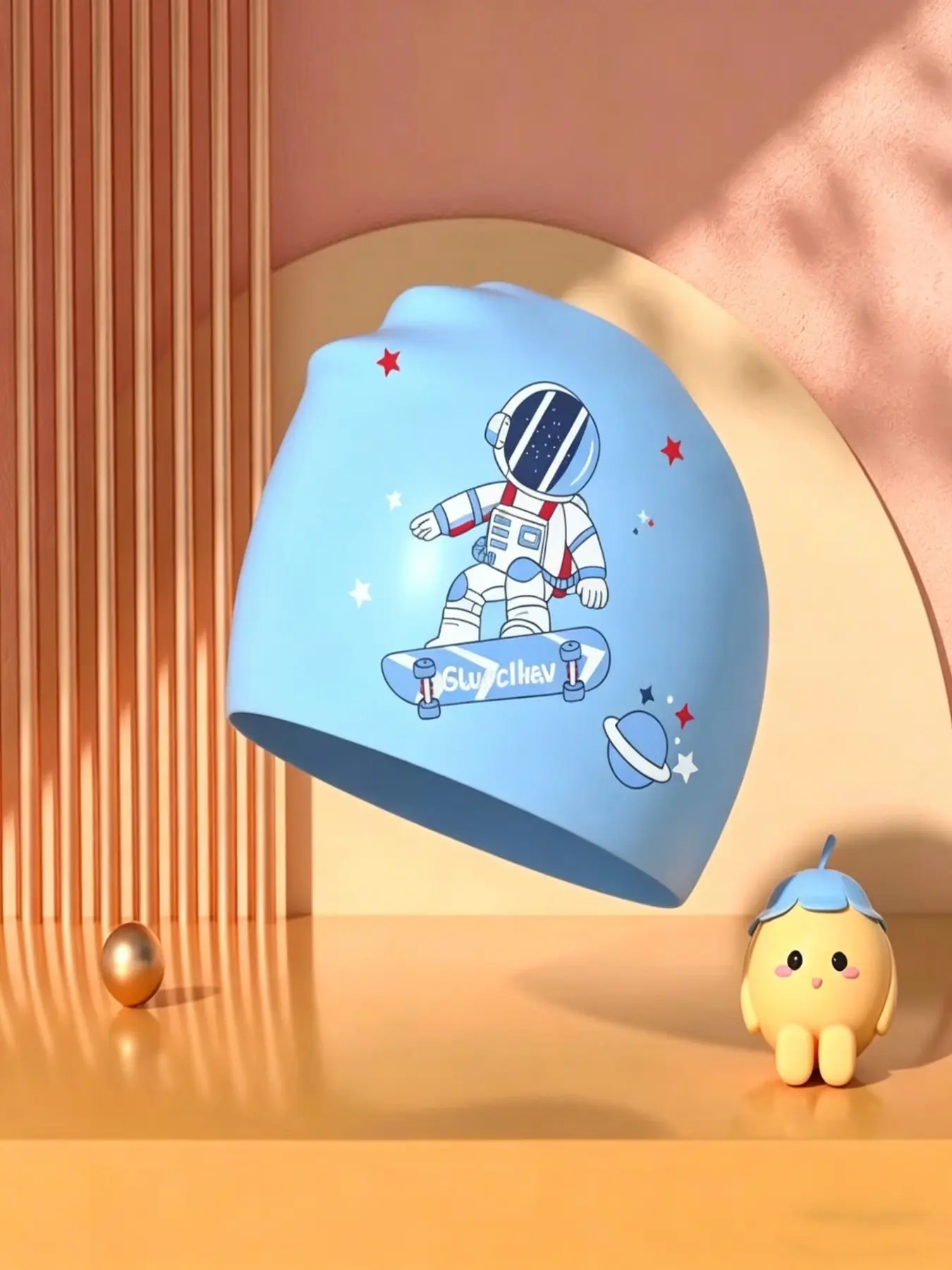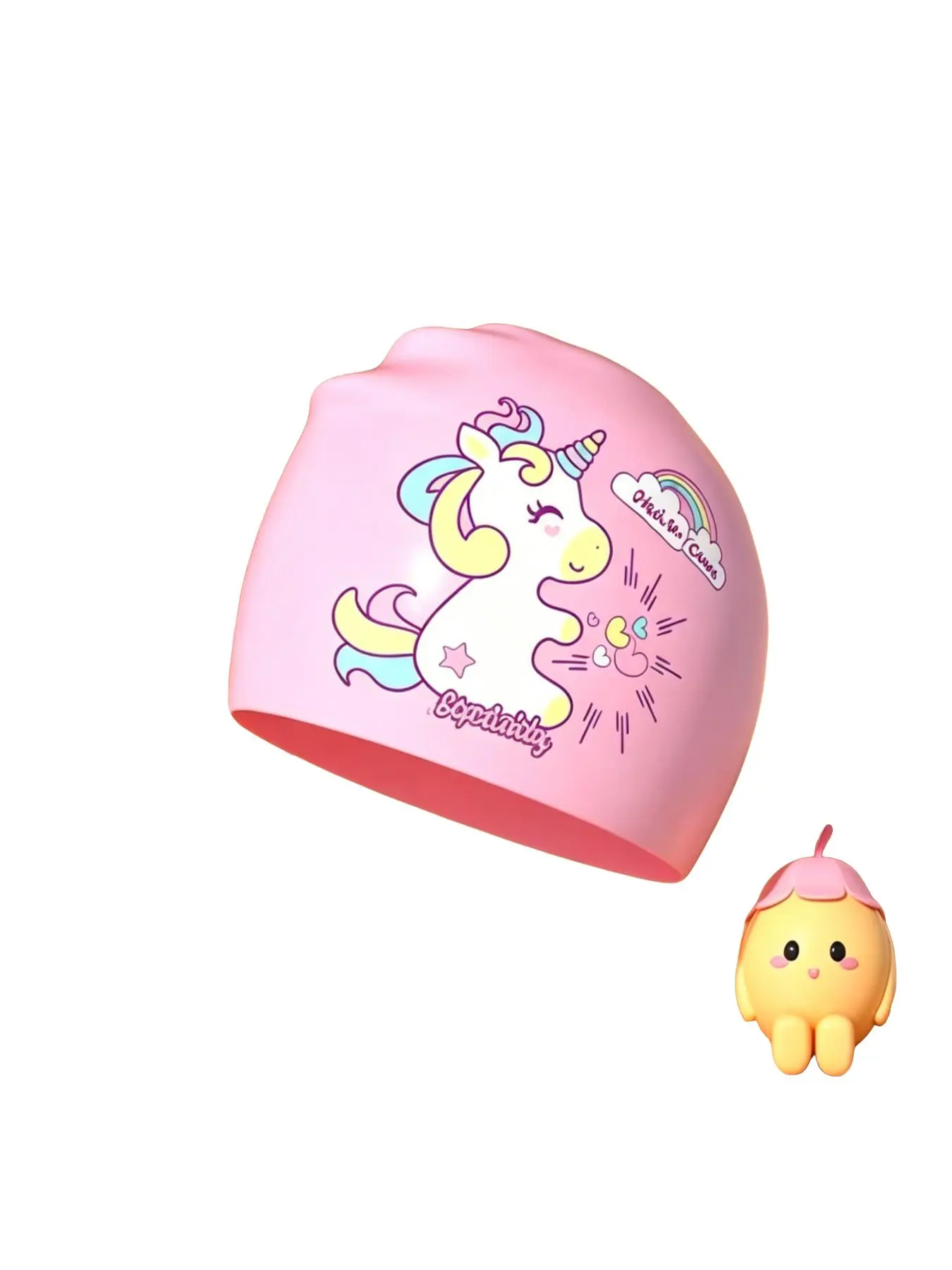 Silicone Swim Cap, Waterproof, Non-Irritating, Unisex, Large Size, High Elasticity, Cartoon Swan Print, Ideal for Boys and Girls