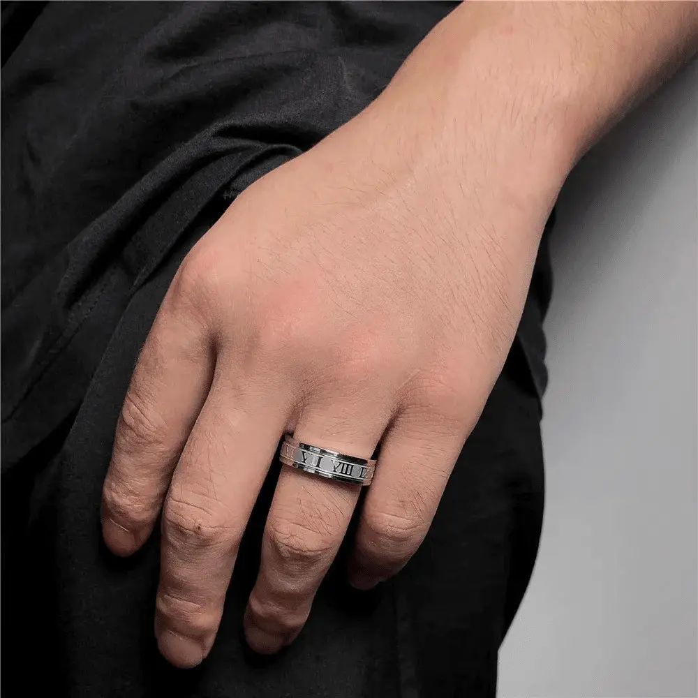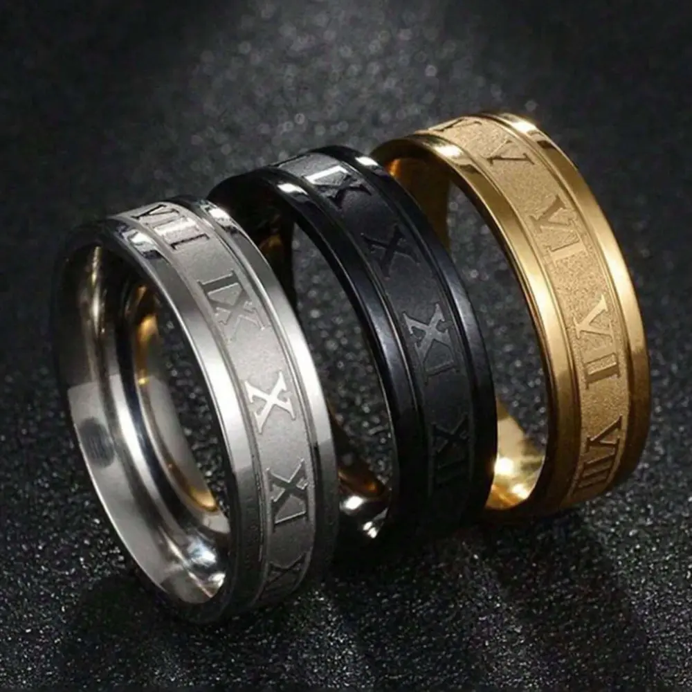 Elegant Roman Numeral Stainless Steel Ring for Men – Stylish Party Jewelry Gift