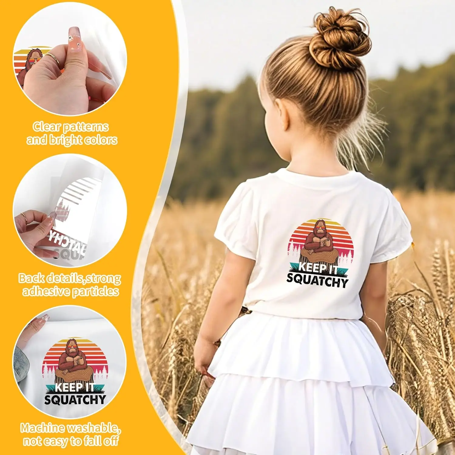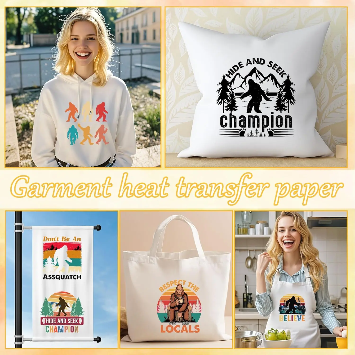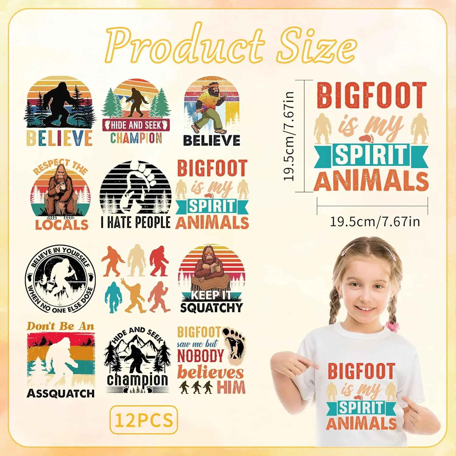 ·Creative Fashion Design: 7.67x7.67 inch iron on decals showcase detailed sasquatch forest artwork; bold colors and crisp lines for eye-catching customization