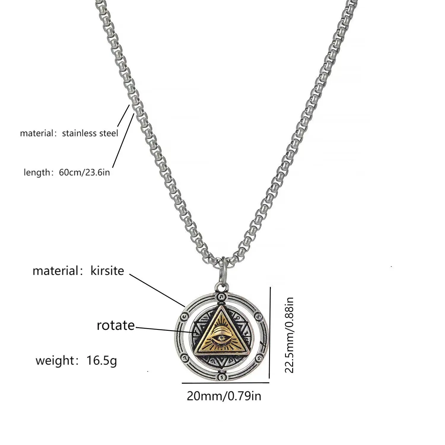 Exquisite Design: The pendant showcases a detailed all-seeing eye within a triangular shape, set against a circular backdrop with radiating lines, creating a captivating and mystical look.