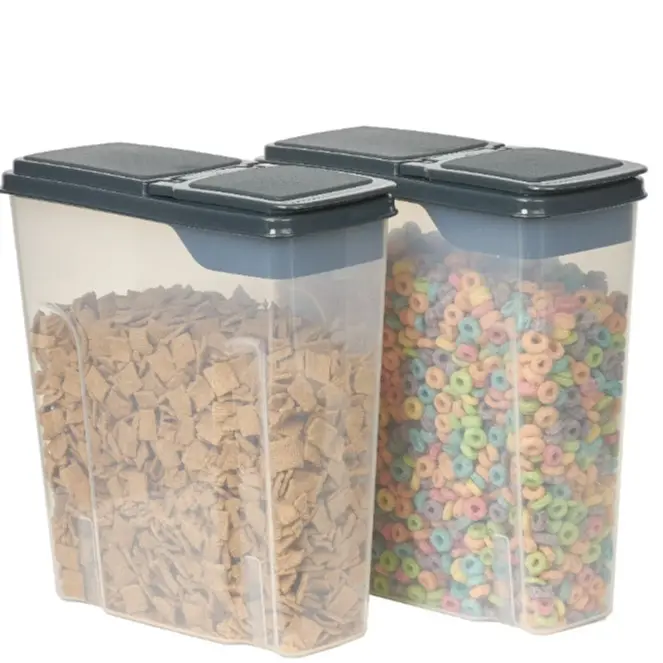 2-Pack Cereal Storage Containers 24 Cup Airtight Plastic Food Storage Canisters with Dark Gray Lids