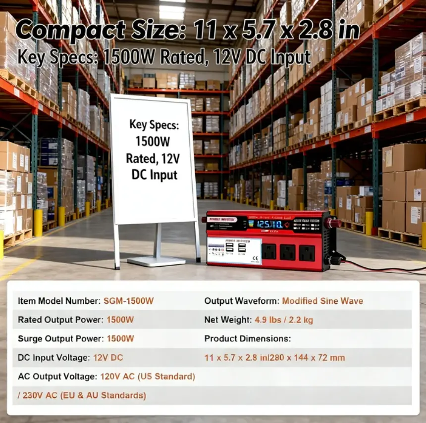 Get the ultimate portable power solution with our 5000W peak universal car power inverter! Designed for wide compatibility, this DC 12V to 110V AC converter works with all 12V vehicles, including cars, trucks, SUVs, RVs, and boats, making it perfect for drivers, campers, and outdoor lovers.