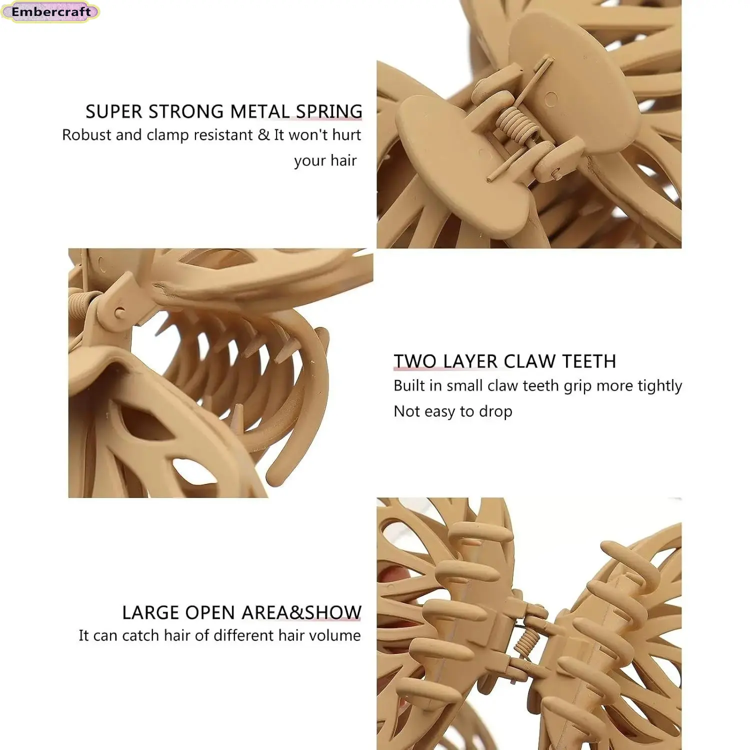 ·Set of three butterfly-shaped claw clips in a soft matte finish