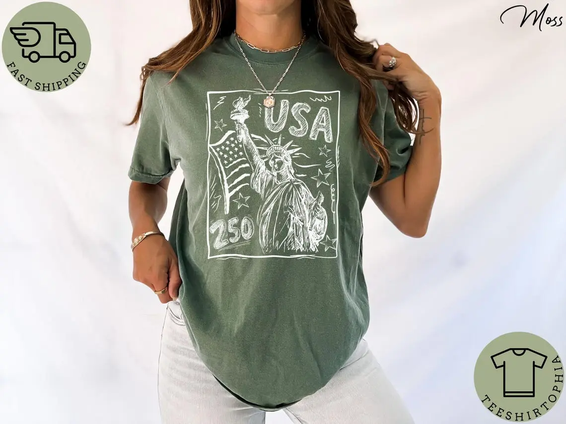 5. Comfort Colors Statue of Liberty Shirt, USA 250 Vintage America Tee, 4th of July T Shirt, Retro Patriotic Graphic Tee, American Flag Shirt
