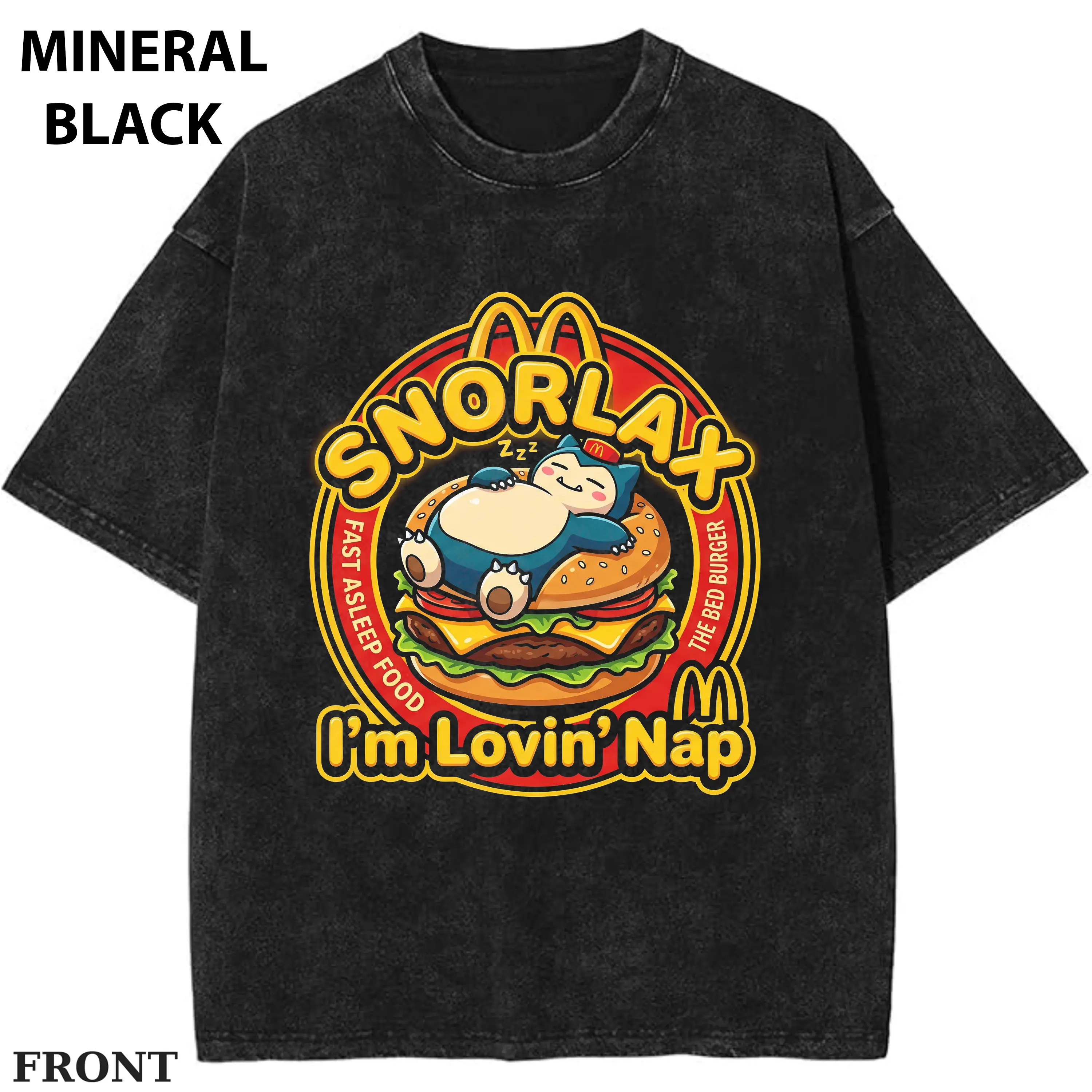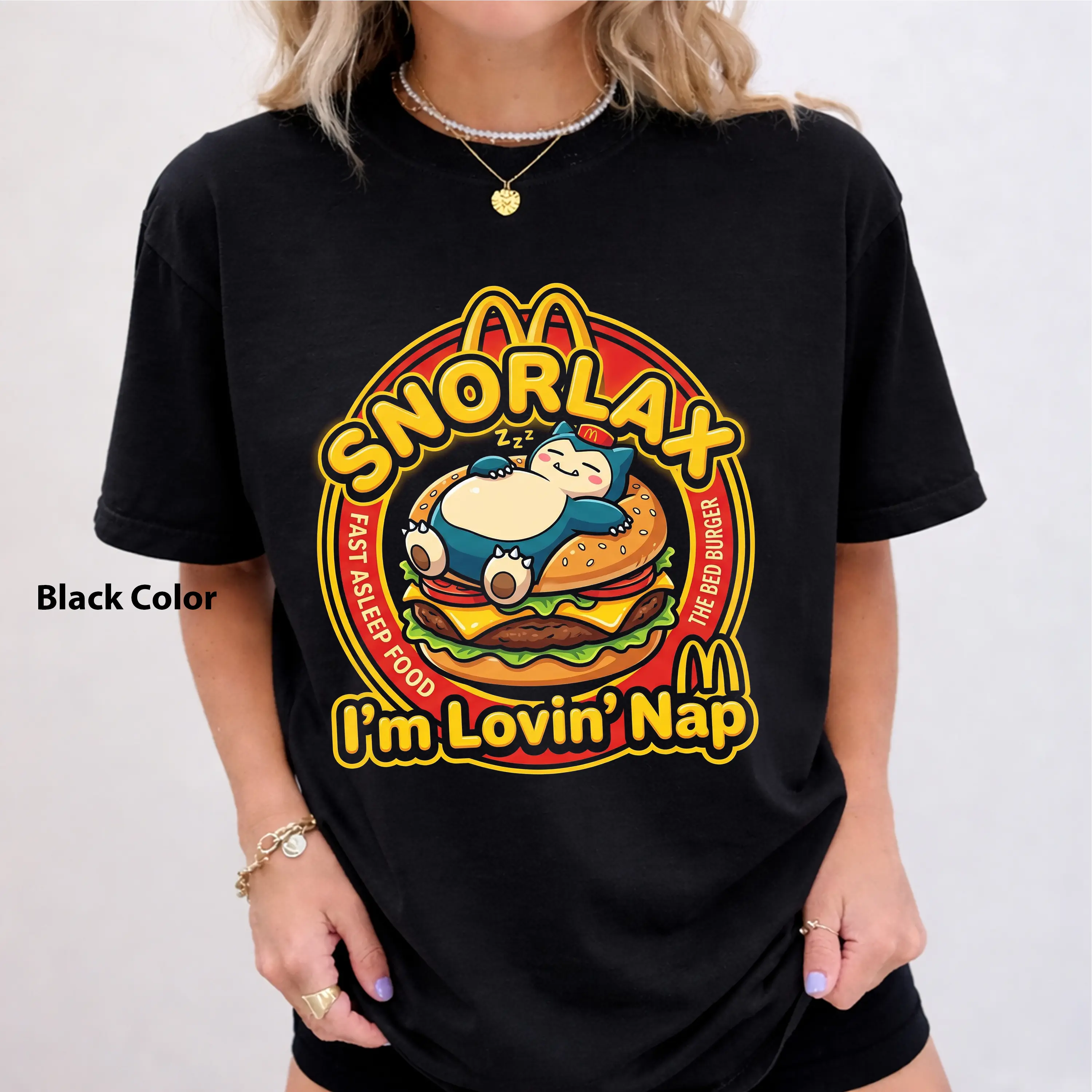 snor Sleepy Burger Shirt, Anime PKM T-shirt, Lazy Foodie Meme Tee, Cute Sleeping Character Graphic T-Shirt, Funny Nap Lover Shirt, Fast Food Parody Streetwear Womenswear Top