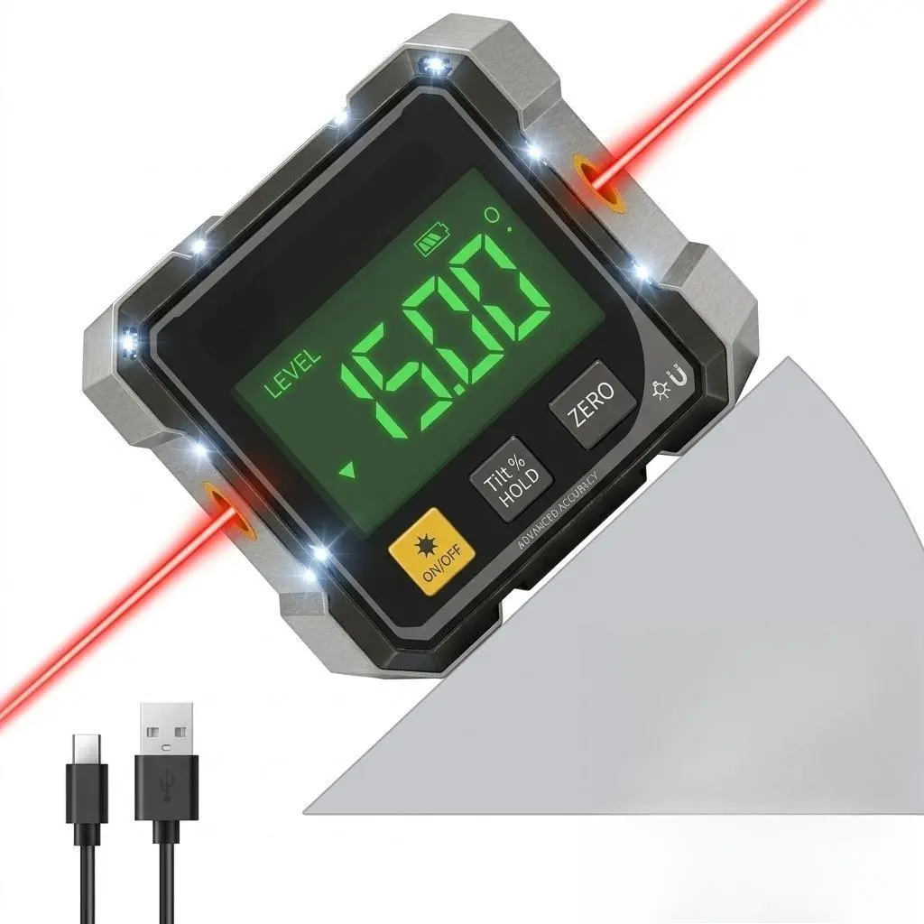 Dual Laser Level with 4-Side Magnetic Base, Digital Angle Finder 360° Alignment Tool for Newbies and Solo Dwellers, Professional Precision Woodworking Measuring Tool for Construction, Perfect Gift for Men Every Family