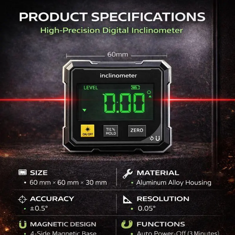 Absolute Mode provides accurate leveling based on a fixed reference point, while Relative Mode allows zeroing at any angle for flexible and precise measurements. Ideal for construction, carpentry, installation, and engineering work.