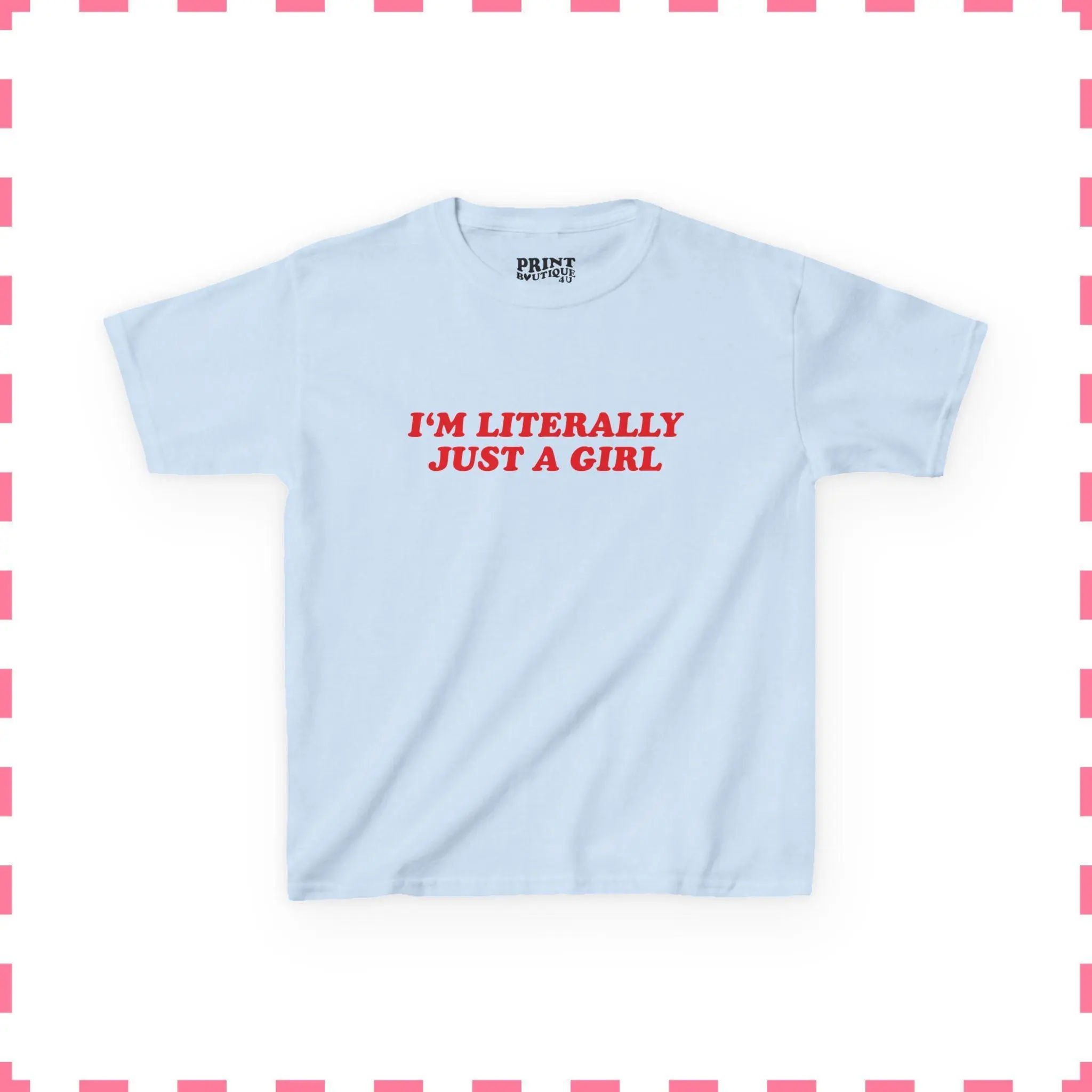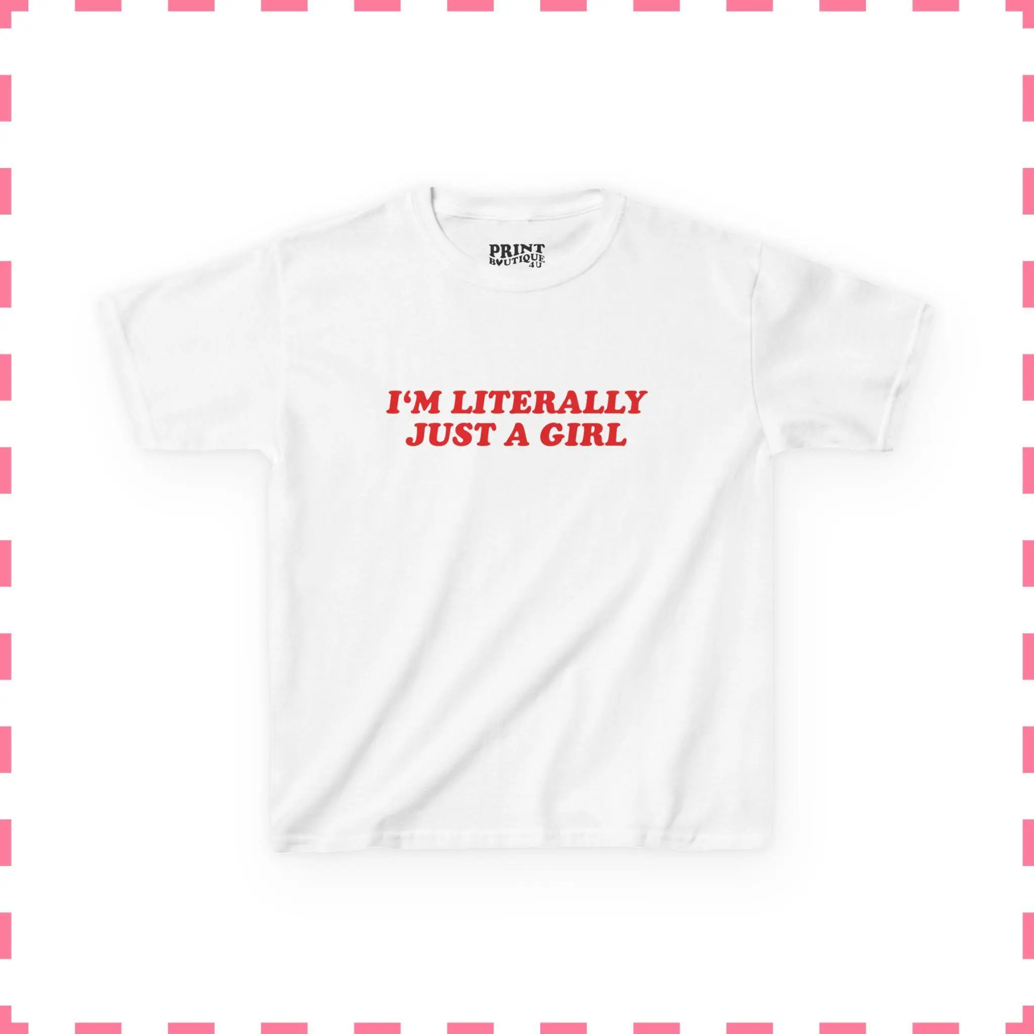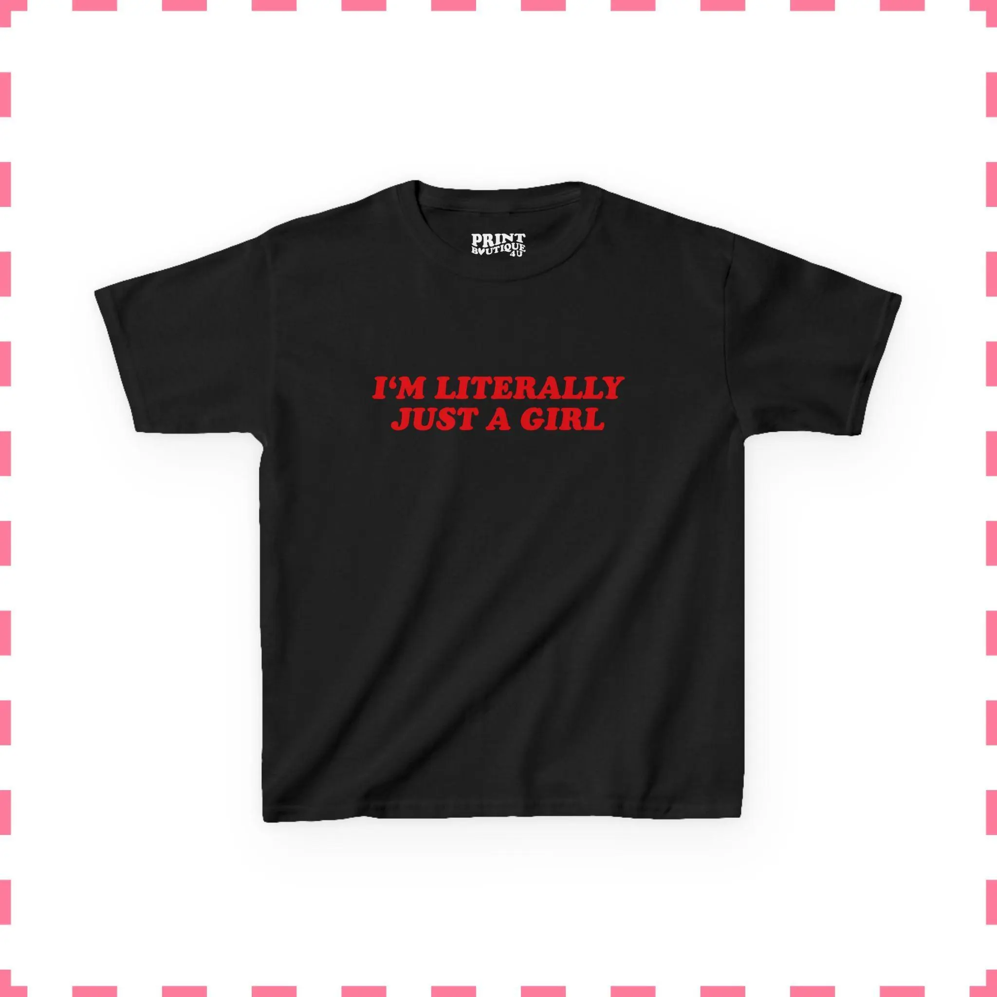 I'm Literally Just A Girl Baby Tee Funny Feminist T-shirt Y2k Baby Tee For Women Soft Girl Aesthetic Crop Top Sassy Graphic Tee