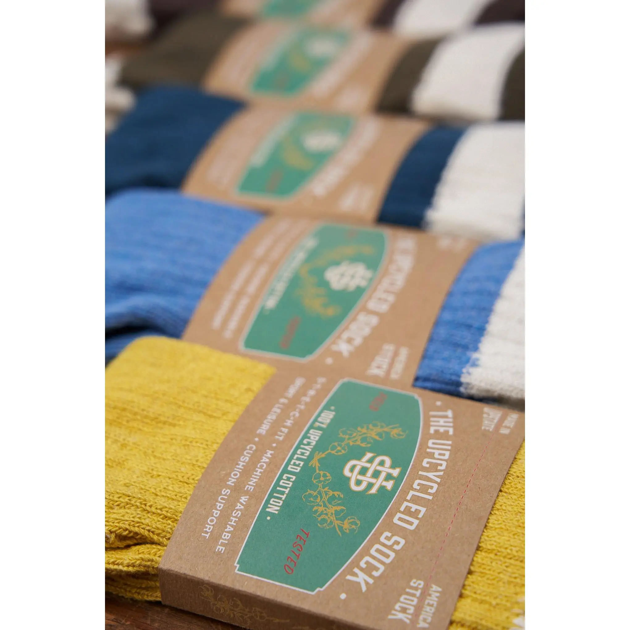 The upcycled cotton blend is heavy enough for outdoor activities but still incredibly breathable to keep your feet fresh on hot summer days hiking through the Catskills. We hope you like them as much as we do.
