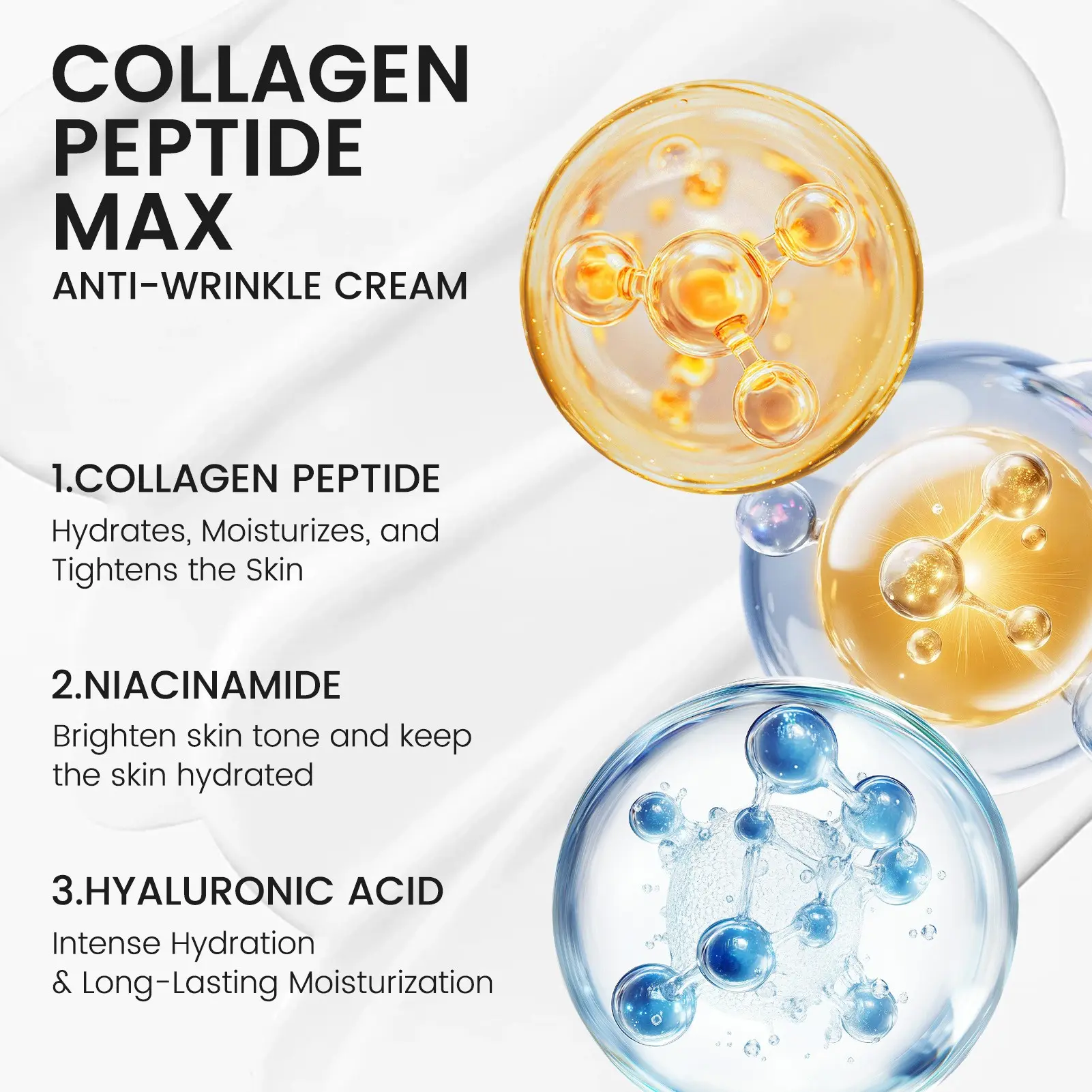 Collagen Peptide Anti-Wrinkle Cream, Niacinamide & Hyaluronic Acid, Firming & Brightening, Long-Lasting Moisture, Unisex Daily Skincare