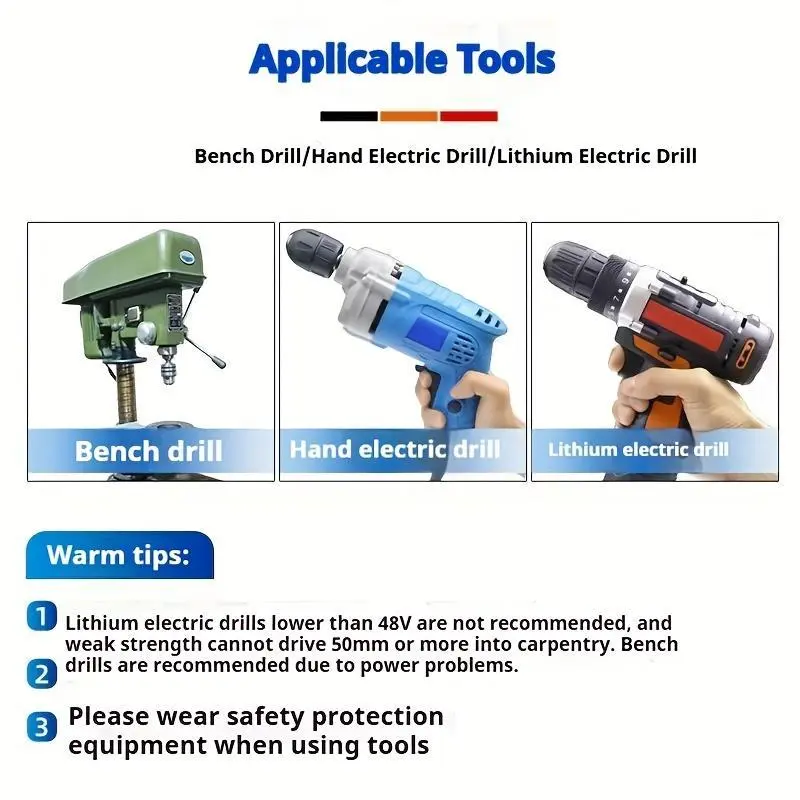 ·Hex Shank Design: Features a 1/4" hex shank, ensuring compatibility with compatible power tools and drill chucks. Ideal for woodworking, plastic, and metal projects. 🛠️