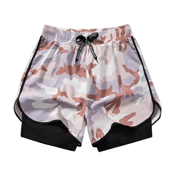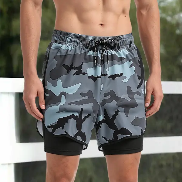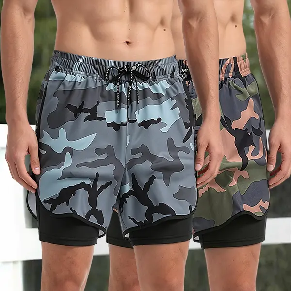 Men's 2-Pack Camo 2-in-1 Training Shorts - Moisture-Wicking with Anti-Chafe Liner, Lightweight & Breathable, Perfect for Sports Training