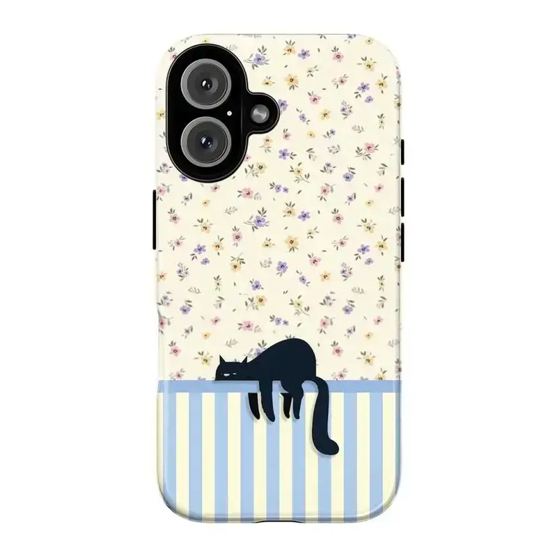 Vintage Black Cat Phone Case Retro Floral Illustration Style Phone Case Compatible for iPhone 17 16 15 14 13 12 and for Samsung S23-S25 Perfect Gift For Cute Women Man