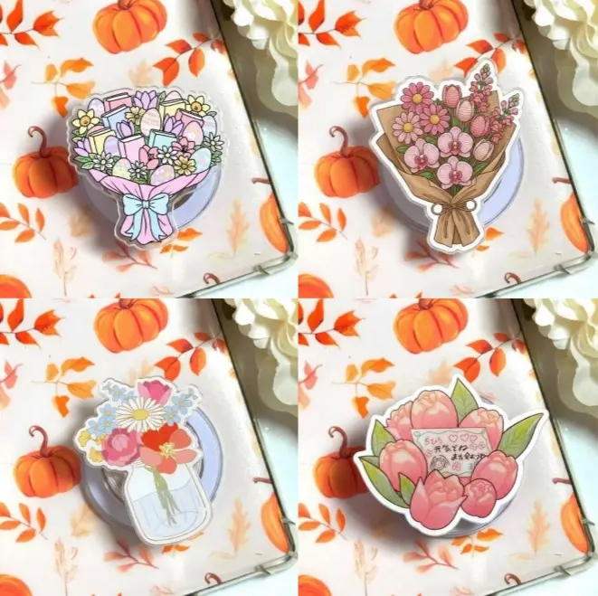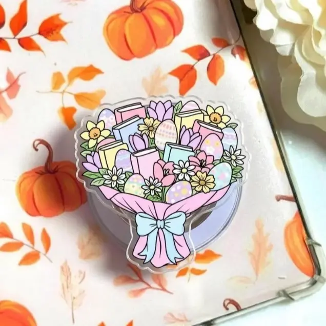 (4 Options) Floral Spring Book Lover MagSafe Phone Grip, Eternal Bloom Crochet Flower Phone Holder, Flower Kindle Grip, Cartoon Grip Holder, Gifts For Girls Boys