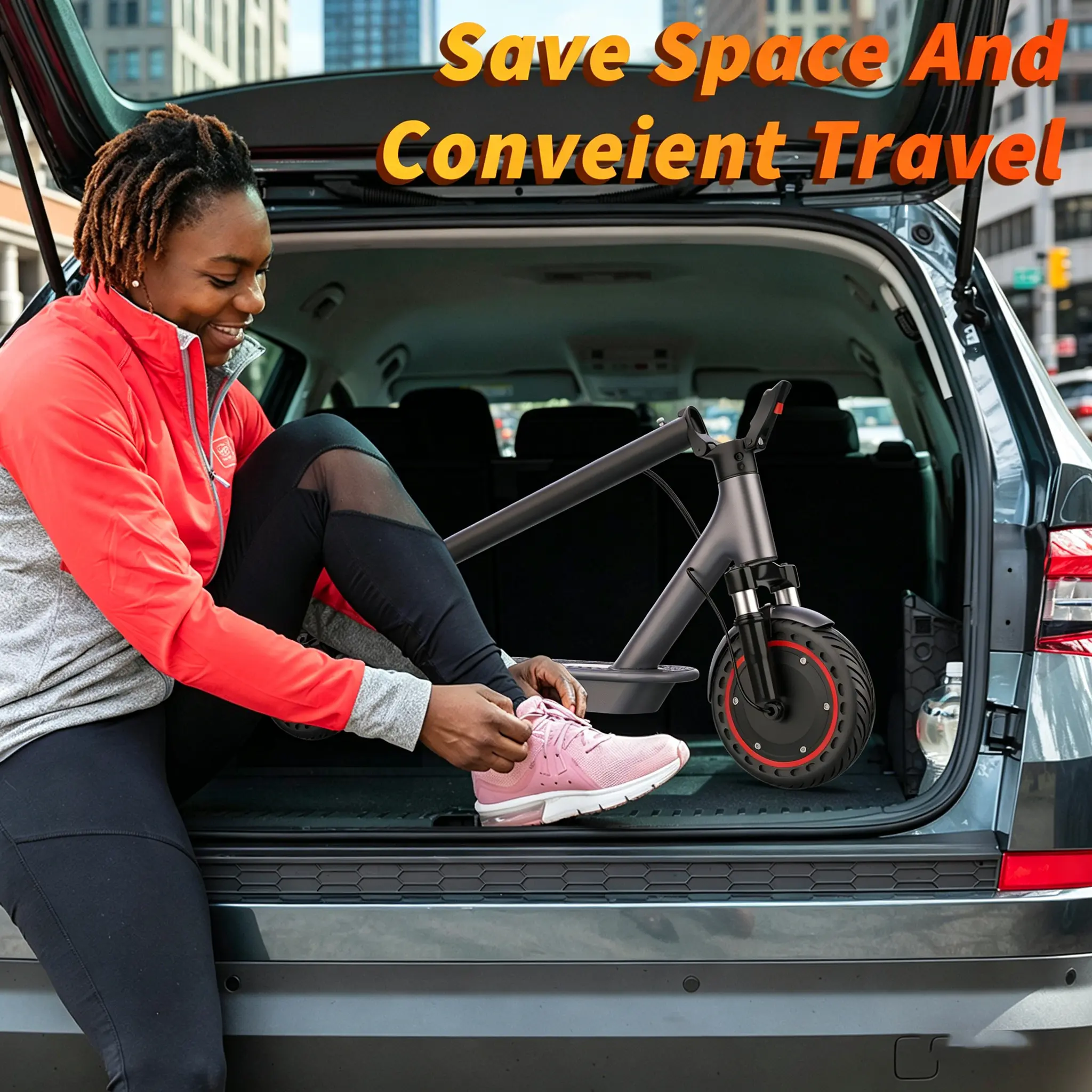Engineered for unmatched versatility, our 2026 upgraded folding electric scooter is the ultimate all-round ride designed to meet the needs of both adults and kids. Whether you’re navigating daily urban commutes, zipping around campus, enjoying family leisure rides, or running quick errands around the neighborhood, this scooter delivers a smooth, accessible, and fun riding experience for users of all ages and skill levels. Its innovative one-second foldable design ensures ultra-easy storage and transport, fitting seamlessly into car trunks, under office desks, or in home storage spaces with zero hassle.