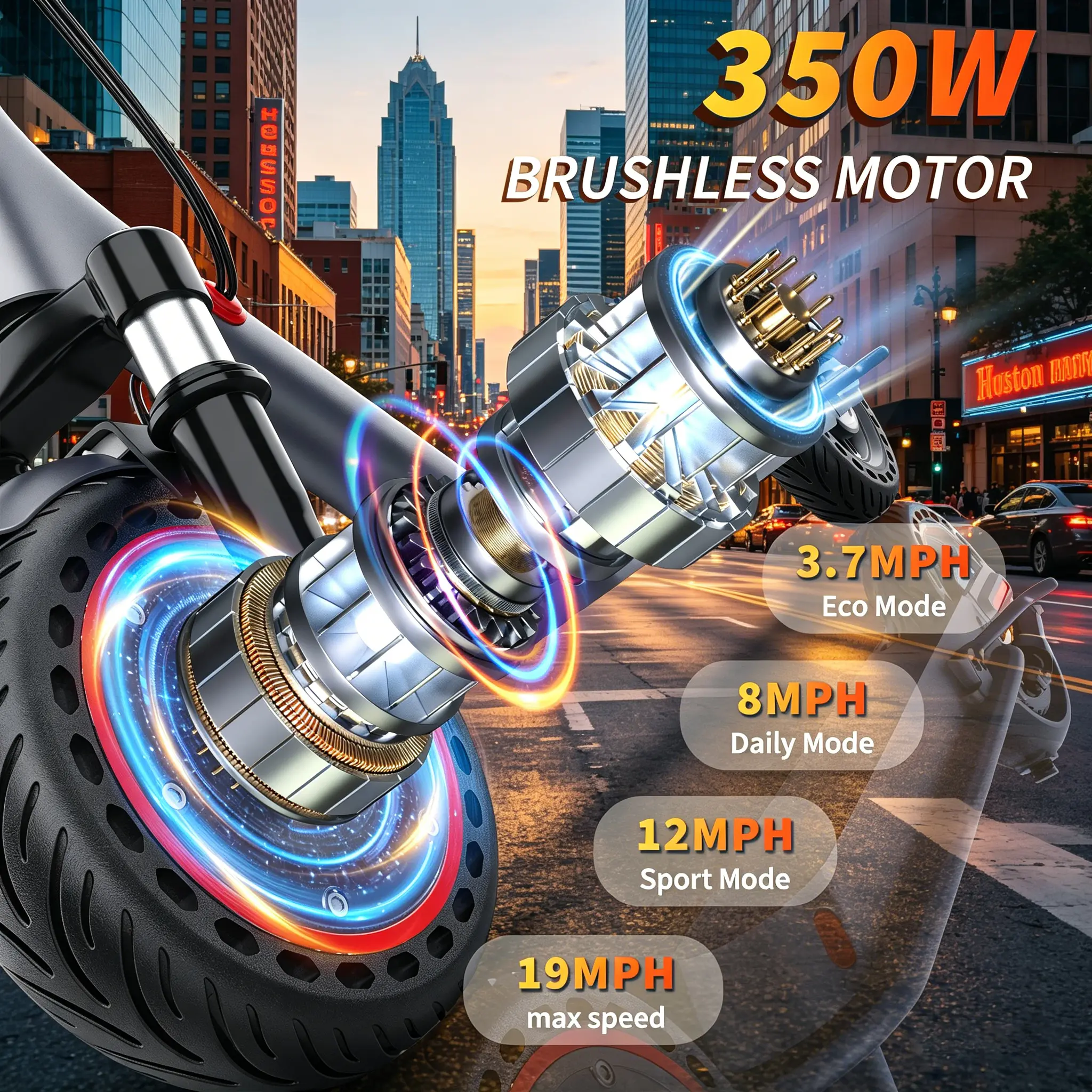 Powered by an upgraded high-efficiency brushless motor system, this electric scooter achieves a top speed of 16-22 Mph, letting you breeze through city traffic and cut down your commute time significantly. With an industry-leading battery range of 12-50 miles on a single full charge, it fully caters to all your travel demands—from quick 1-mile trips to the grocery store to all-day family outdoor excursions, completely eliminating range anxiety for every ride.