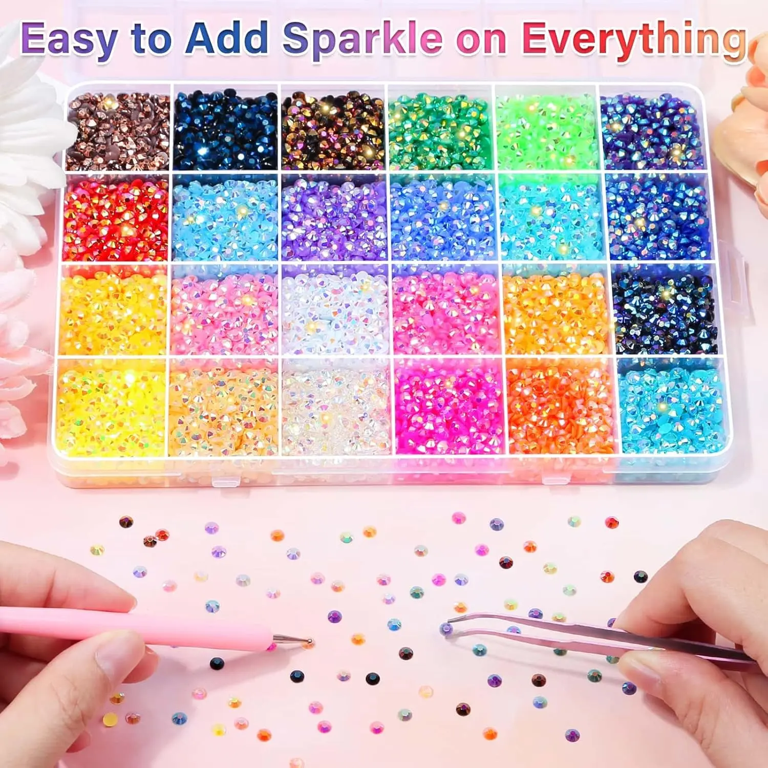 ·【What You Get】Audab crafting rhinestones with glue kit for bedazzling comes with 16000PCS mm multicolored rhinestones of 15/40 color
