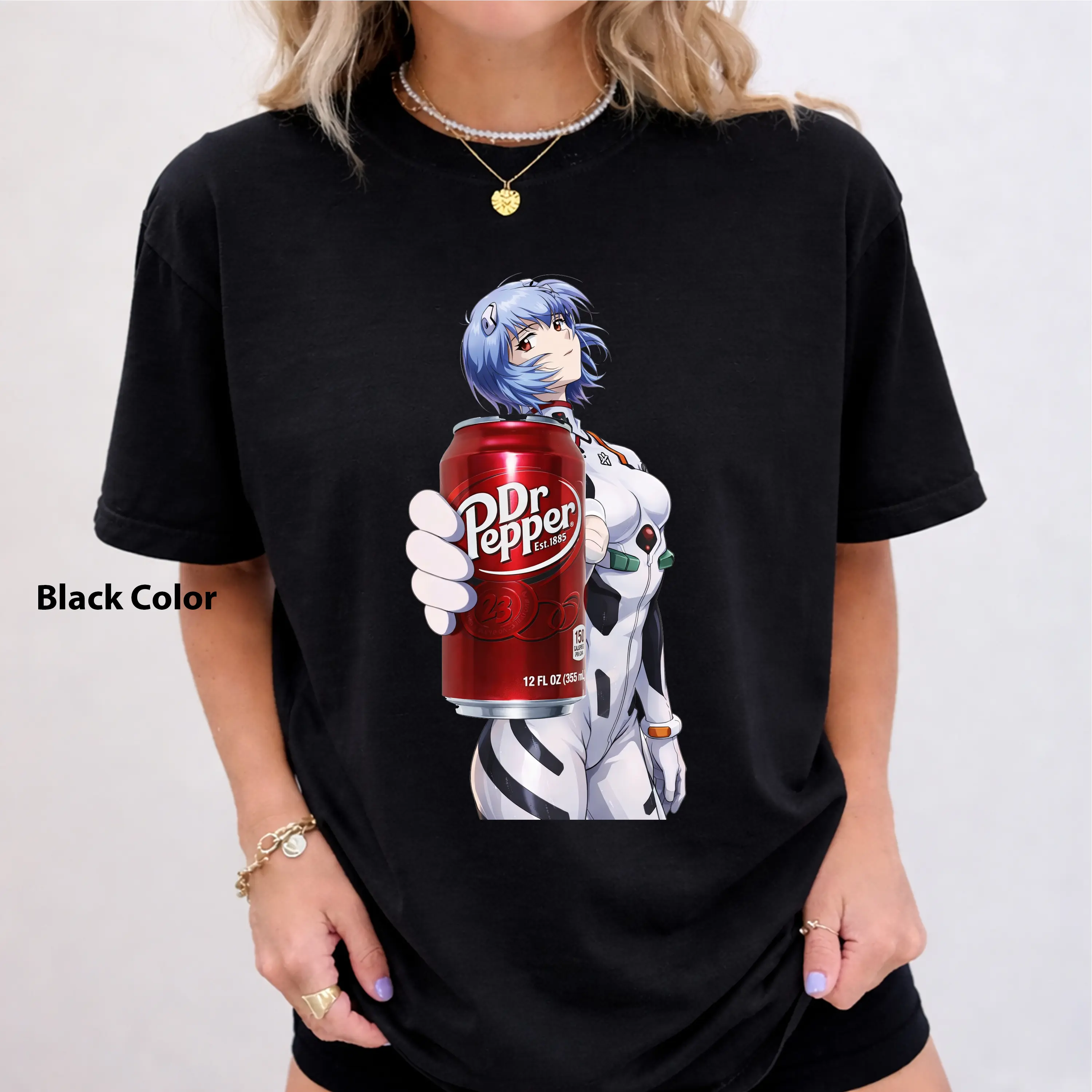 Rei Ayanami x Dr pepper T-shirt, Anime Mecha Girl Shirt, Soda Core Graphic Tee, Sci Fi Waifu Aesthetic, Y2K Pop Culture Outfit