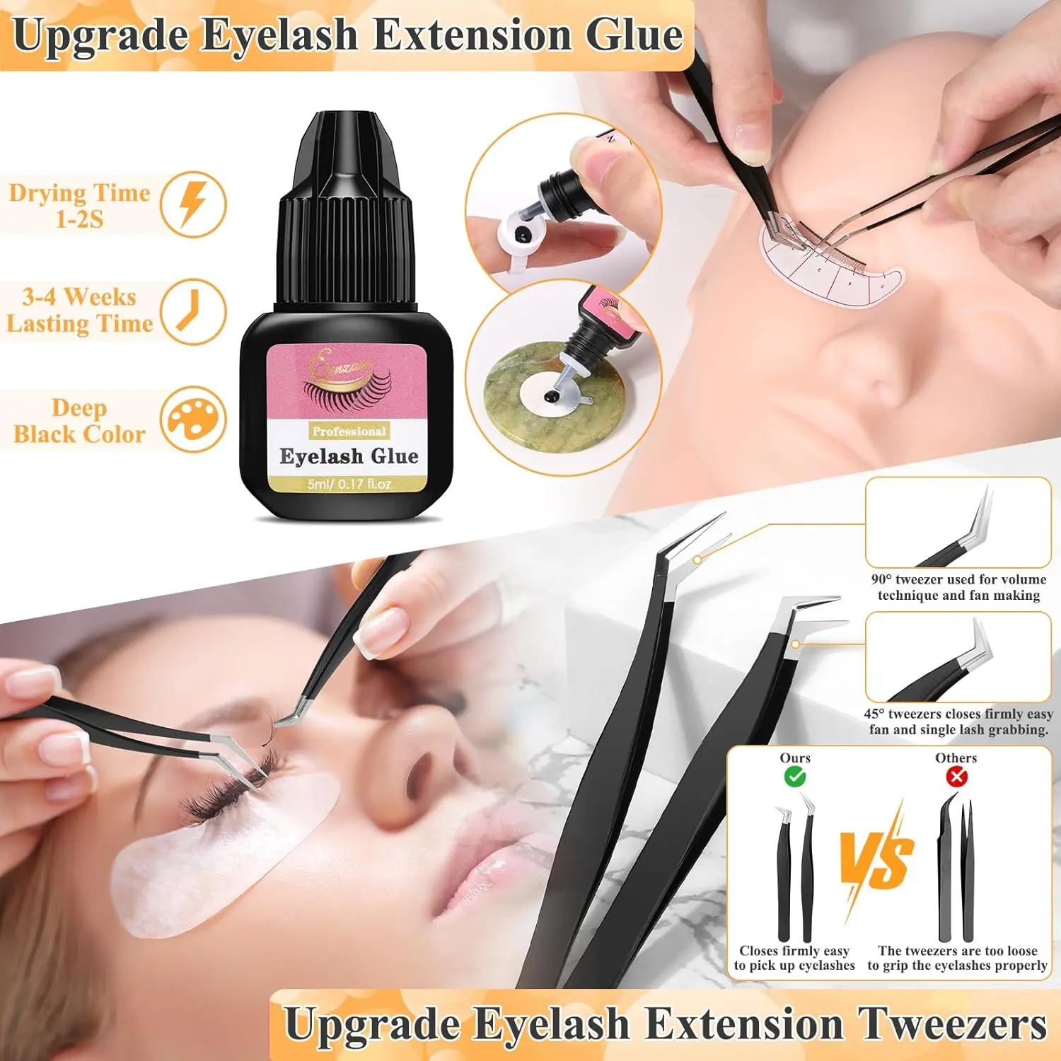 Lashes Kit for Eyelash Extension Beginner Lash Tech Starter Kit with Eye Lash Mannequin Head, Professional Eyelash Extension Kit with Lash Fan, Extension Glue and Eyelash Remover for Practice Training