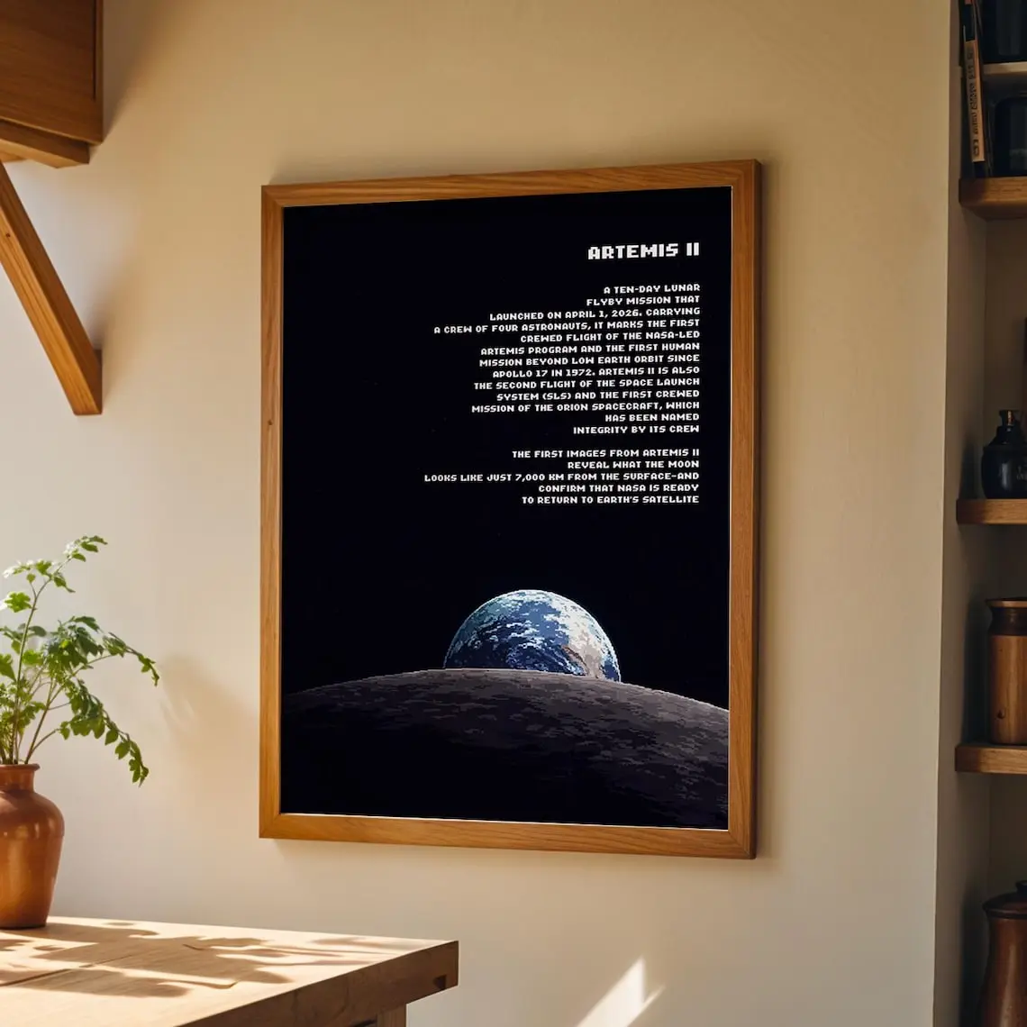 Artemis II Poster  NASA Moon Mission Pixel Art Print  Earthrise Space Wall Art  Artemis 2 Lunar Mission
